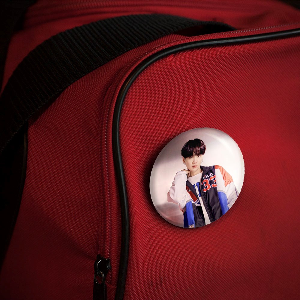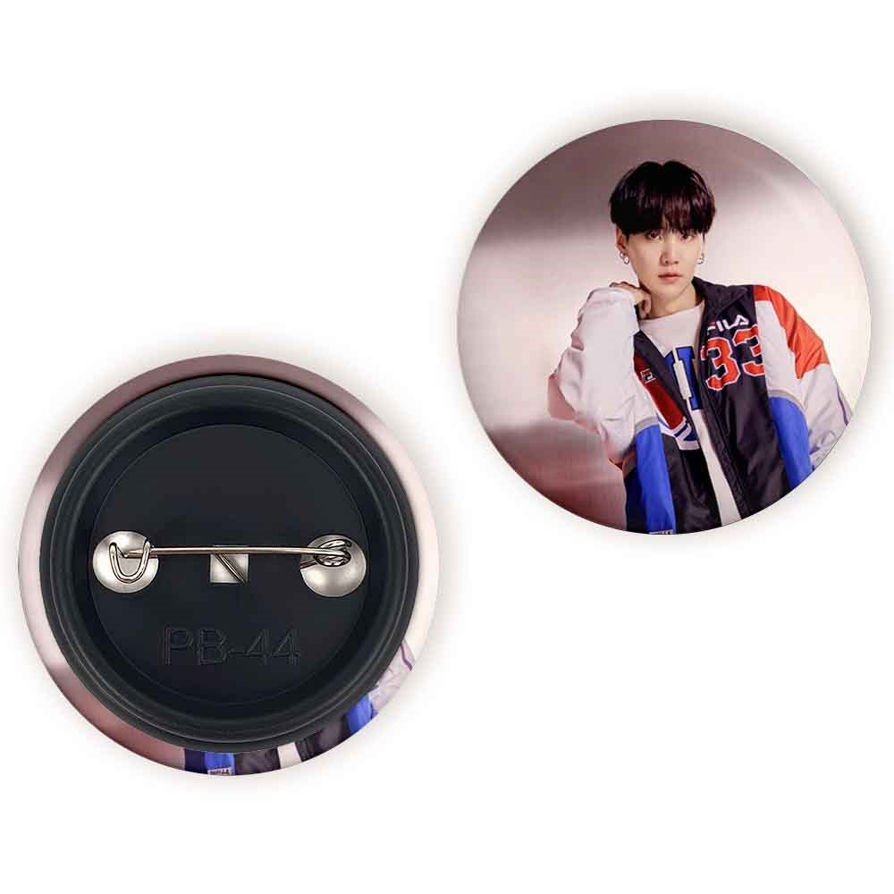پیکسل 44 میلی متری شوگا Suga گروه بی تی اس BTS خندالو با روکش سلفون حرارتی مات مخملی ضدخش و قطعه پشتی رنگی تولید شده است.پلاستیکی پشت پیکسل با سوزن یک تکه ثابت و بدون لغزش و جا به جایی، ایستایی بسیار بهتری نسبت به پشتی فلزی پیکسل دارند که این مهم در تولید این محصول نیز رعایت شده است.