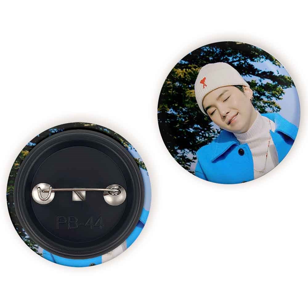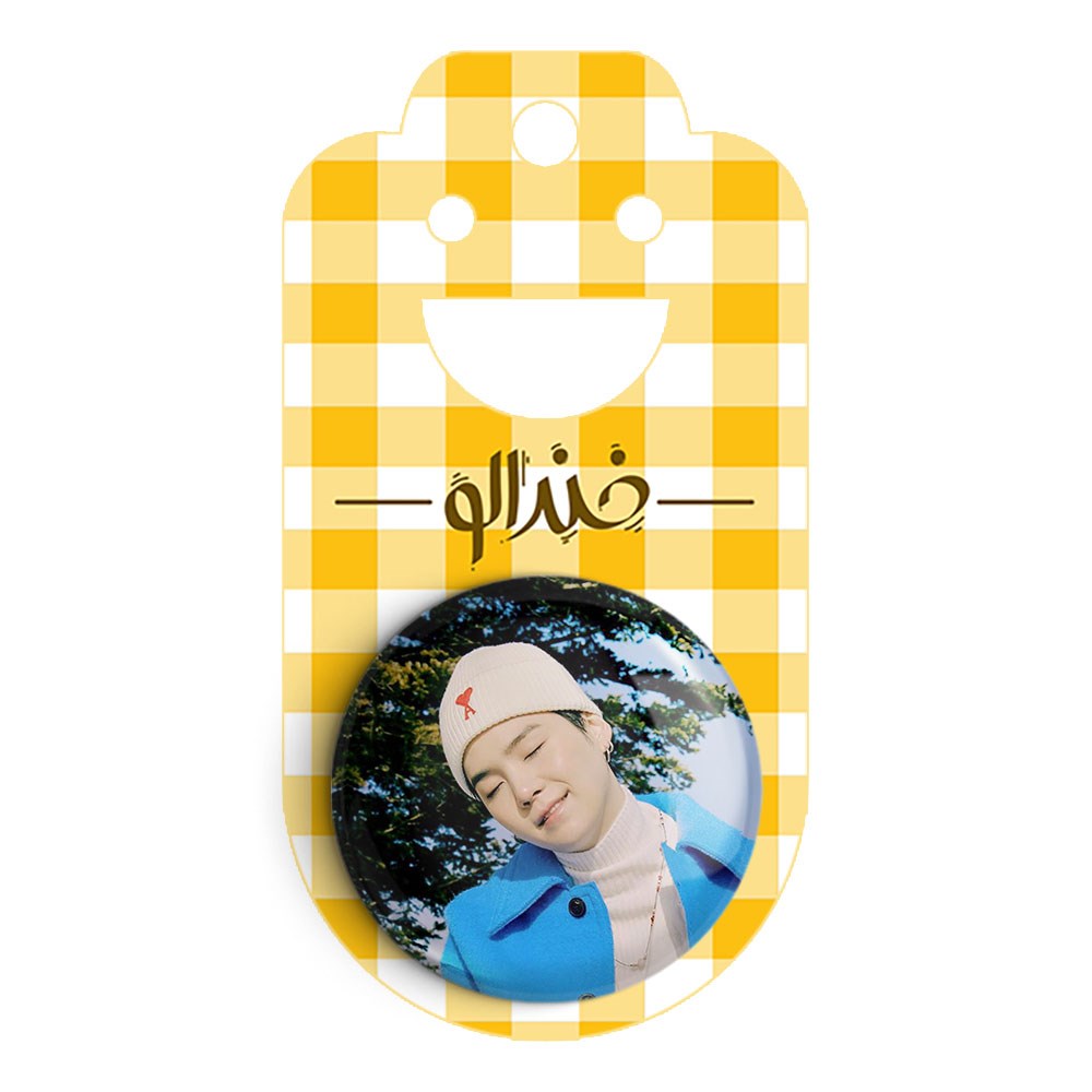 پیکسل 44 میلی متری شوگا Suga گروه بی تی اس BTS خندالو با روکش سلفون حرارتی مات مخملی ضدخش و قطعه پشتی رنگی تولید شده است.پلاستیکی پشت پیکسل با سوزن یک تکه ثابت و بدون لغزش و جا به جایی، ایستایی بسیار بهتری نسبت به پشتی فلزی پیکسل دارند که این مهم در تولید این محصول نیز رعایت شده است.