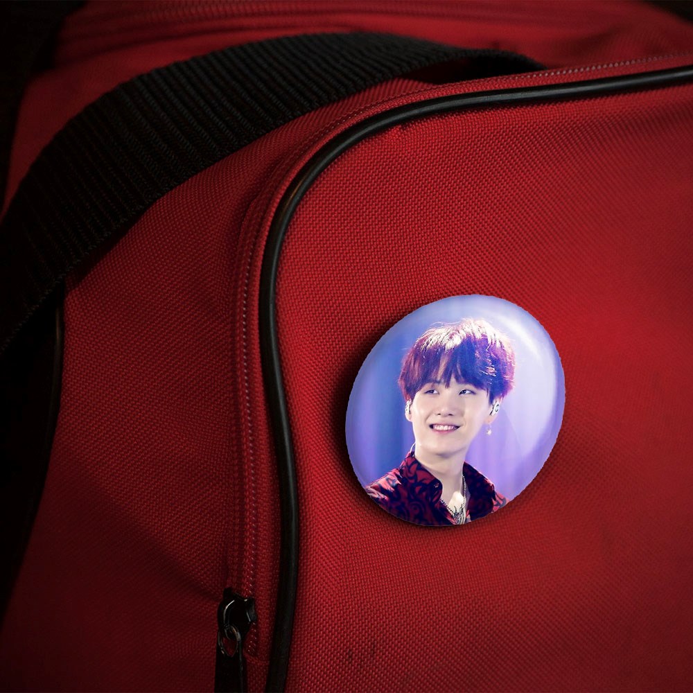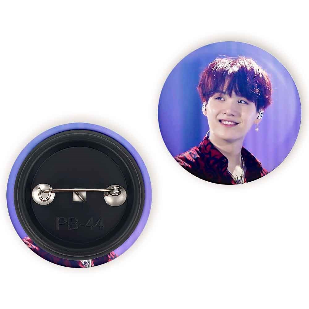 پیکسل 44 میلی متری شوگا Suga گروه بی تی اس BTS خندالو با روکش سلفون حرارتی مات مخملی ضدخش و قطعه پشتی رنگی تولید شده است.پلاستیکی پشت پیکسل با سوزن یک تکه ثابت و بدون لغزش و جا به جایی، ایستایی بسیار بهتری نسبت به پشتی فلزی پیکسل دارند که این مهم در تولید این محصول نیز رعایت شده است.