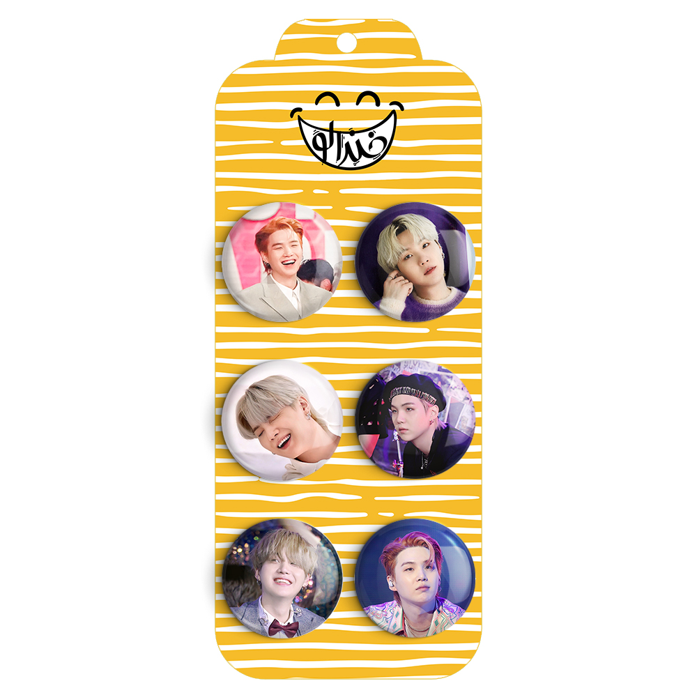 مجموعه 6 عددی پیکسل خندالو طرح شوگا (Suga) گروه BTS با روکش سلفون حرارتی براق ضدخش و قطعه پشتی رنگی تولید شده است. قطعات پشتی از میان 6 رنگ سفید، مشکی، صورتی، زرد، آبی و قرمز که با توجه به نوع و رنگبندی طرح روی پیکسل انتخاب شده اند تولید می شود و در هر بسته بندی مطابق عکس محصول می باشد.
