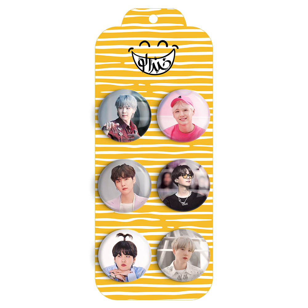 مجموعه 6 عددی پیکسل خندالو طرح شوگا (Suga) گروه BTS با روکش سلفون حرارتی براق ضدخش و قطعه پشتی رنگی تولید شده است. قطعات پشتی از میان 6 رنگ سفید، مشکی، صورتی، زرد، آبی و قرمز که با توجه به نوع و رنگبندی طرح روی پیکسل انتخاب شده اند تولید می شود و در هر بسته بندی مطابق عکس محصول می باشد.