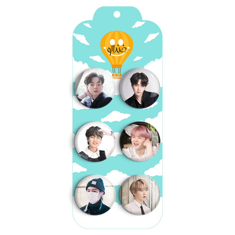 مجموعه 6 عددی پیکسل خندالو طرح شوگا (Suga) گروه BTS با روکش سلفون حرارتی براق ضدخش و قطعه پشتی رنگی تولید شده است. قطعات پشتی از میان 6 رنگ سفید، مشکی، صورتی، زرد، آبی و قرمز که با توجه به نوع و رنگبندی طرح روی پیکسل انتخاب شده اند تولید می شود و در هر بسته بندی مطابق عکس محصول می باشد.