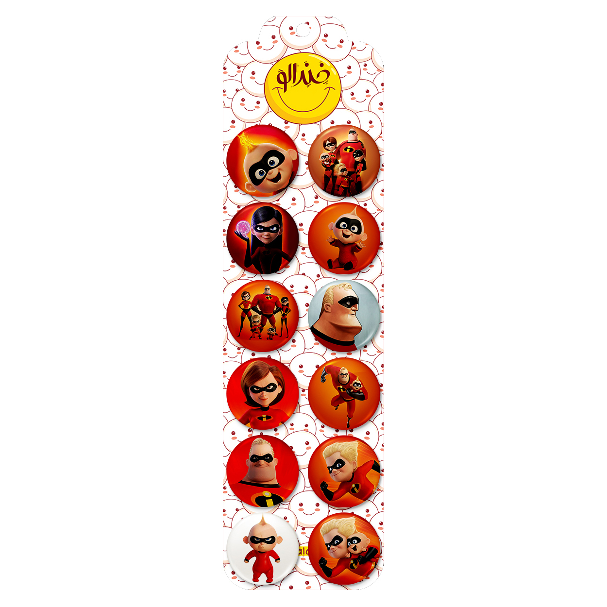پک 12 عددی پیکسل خندالو طرح شگفت انگیزان (Incredibles) با روکش سلفون حرارتی براق ضدخش و قطعه پشتی رنگی تولید شده است. قطعات پشتی از میان 6 رنگ سفید، مشکی، صورتی، زرد، آبی و قرمز که با توجه به نوع و رنگبندی طرح روی پیکسل انتخاب شده اند تولید می شود و در هر بسته بندی مطابق عکس محصول می باشد. قطعات پلاستیکی پشت پیکسل با سوزن یک تکه ثابت و بدون لغزش و جا به جایی، ایستایی بسیار بهتری نسبت به پشتی فلزی پیکسل دارند که این مهم در تولید این محصول نیز رعایت شده است. چاپ پیکسل طرح شگفت انگیزان (Incredibles) بسته ۱۲ عددی نیز با دستگاه های استاندارد و با بهترین سطح کیفی صورت گرفته و طرح با شفافیتی مثال زدنی و با سلفونی بدون شکست نور بر روی پیکسل نقش بسته است.