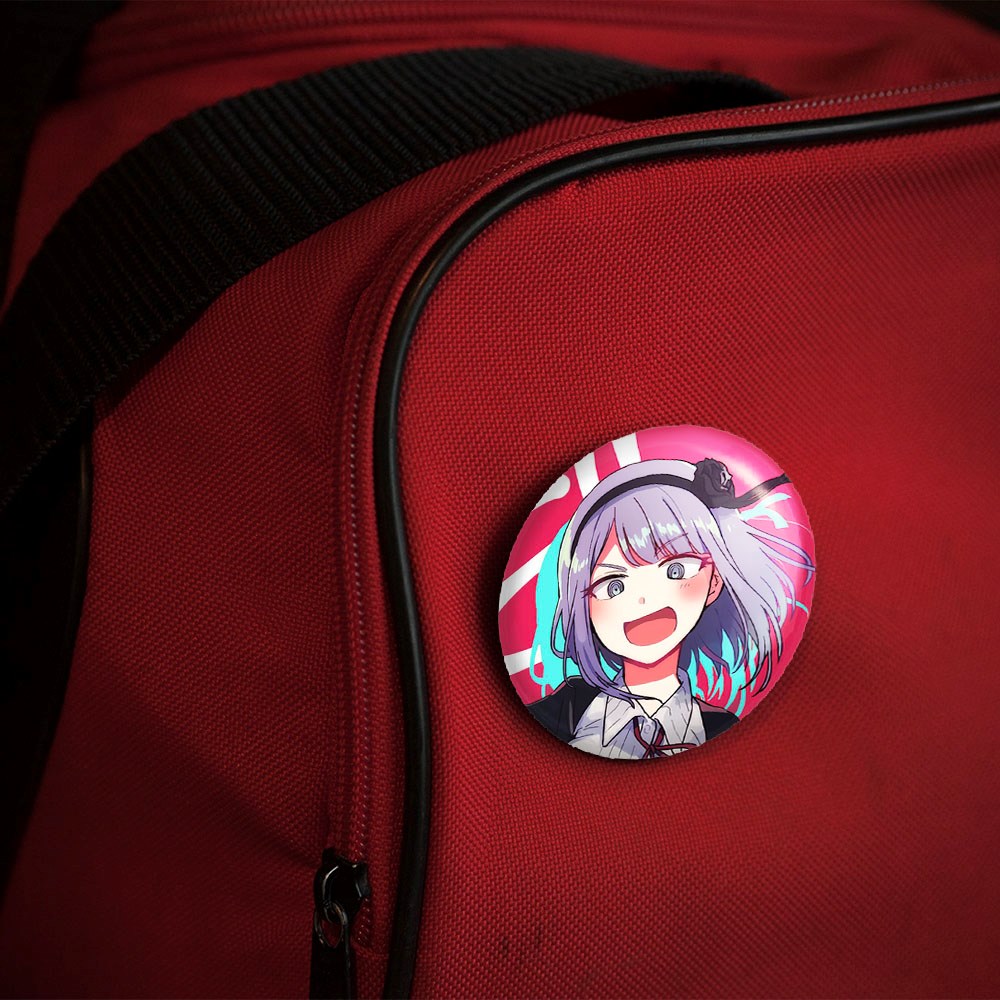 پیکسل 44 میلی متری شیداره انیمه داگاشی کاشی Dagashi Kashi خندالو با روکش سلفون حرارتی مات مخملی ضدخش و قطعه پشتی رنگی تولید شده است.پلاستیکی پشت پیکسل با سوزن یک تکه ثابت و بدون لغزش و جا به جایی، ایستایی بسیار بهتری نسبت به پشتی فلزی پیکسل دارند که این مهم در تولید این محصول نیز رعایت شده است.