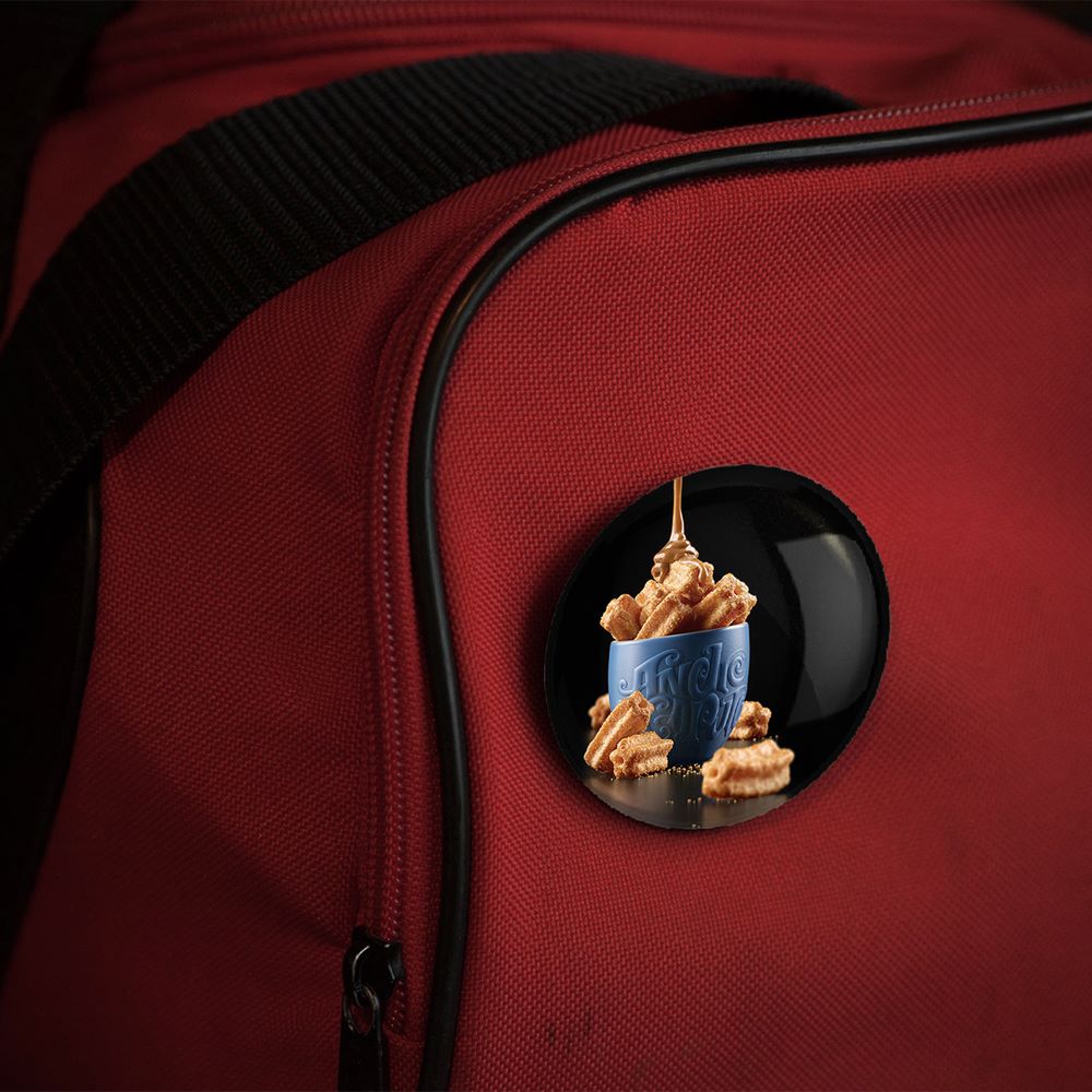 پیکسل 44 میلی متری شیرینی جاتخندالو با روکش سلفون حرارتی مات مخملی ضدخش و قطعه پشتی رنگی تولید شده است. قطعات پلاستیکی پشت پیکسل با سوزن یک تکه ثابت و بدون لغزش و جا به جایی، ایستایی بسیار بهتری نسبت به پشتی فلزی پیکسل دارند که این مهم در تولید این محصول نیز رعایت شده است.