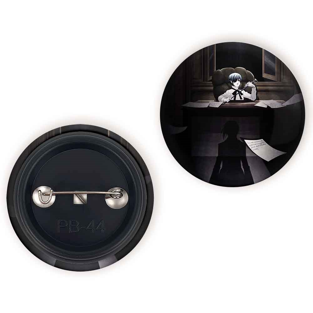 پیکسل 44 میلی متری شیل انیمه خادم سیاه Black Butler خندالو با روکش سلفون حرارتی مات مخملی ضدخش و قطعه پشتی رنگی تولید شده است.پلاستیکی پشت پیکسل با سوزن یک تکه ثابت و بدون لغزش و جا به جایی، ایستایی بسیار بهتری نسبت به پشتی فلزی پیکسل دارند که این مهم در تولید این محصول نیز رعایت شده است.