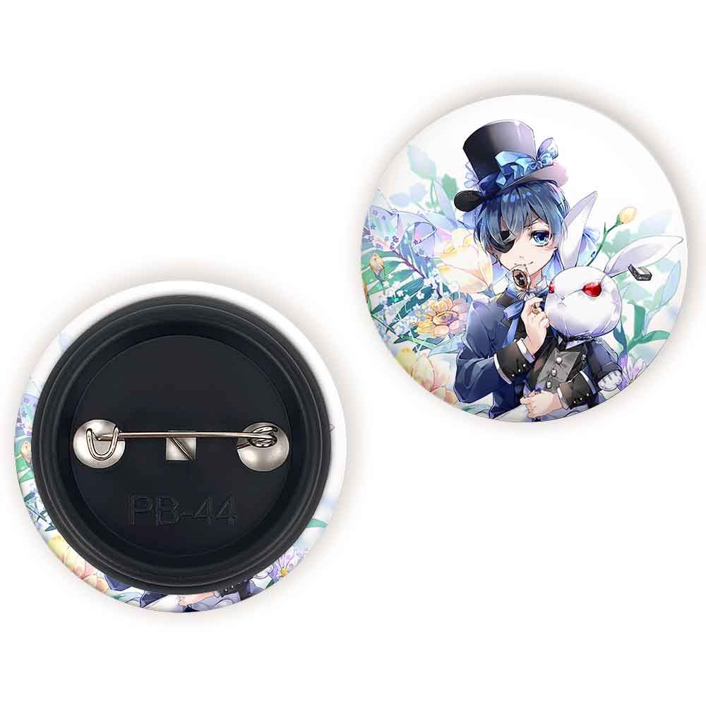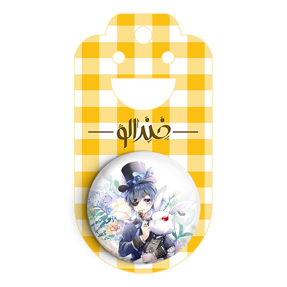 پیکسل 44 میلی متری شیل انیمه خادم سیاه Black Butler خندالو با روکش سلفون حرارتی مات مخملی ضدخش و قطعه پشتی رنگی تولید شده است.پلاستیکی پشت پیکسل با سوزن یک تکه ثابت و بدون لغزش و جا به جایی، ایستایی بسیار بهتری نسبت به پشتی فلزی پیکسل دارند که این مهم در تولید این محصول نیز رعایت شده است.