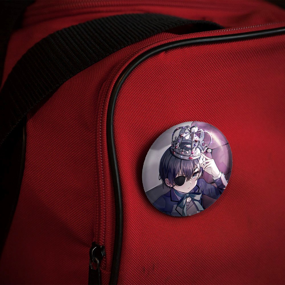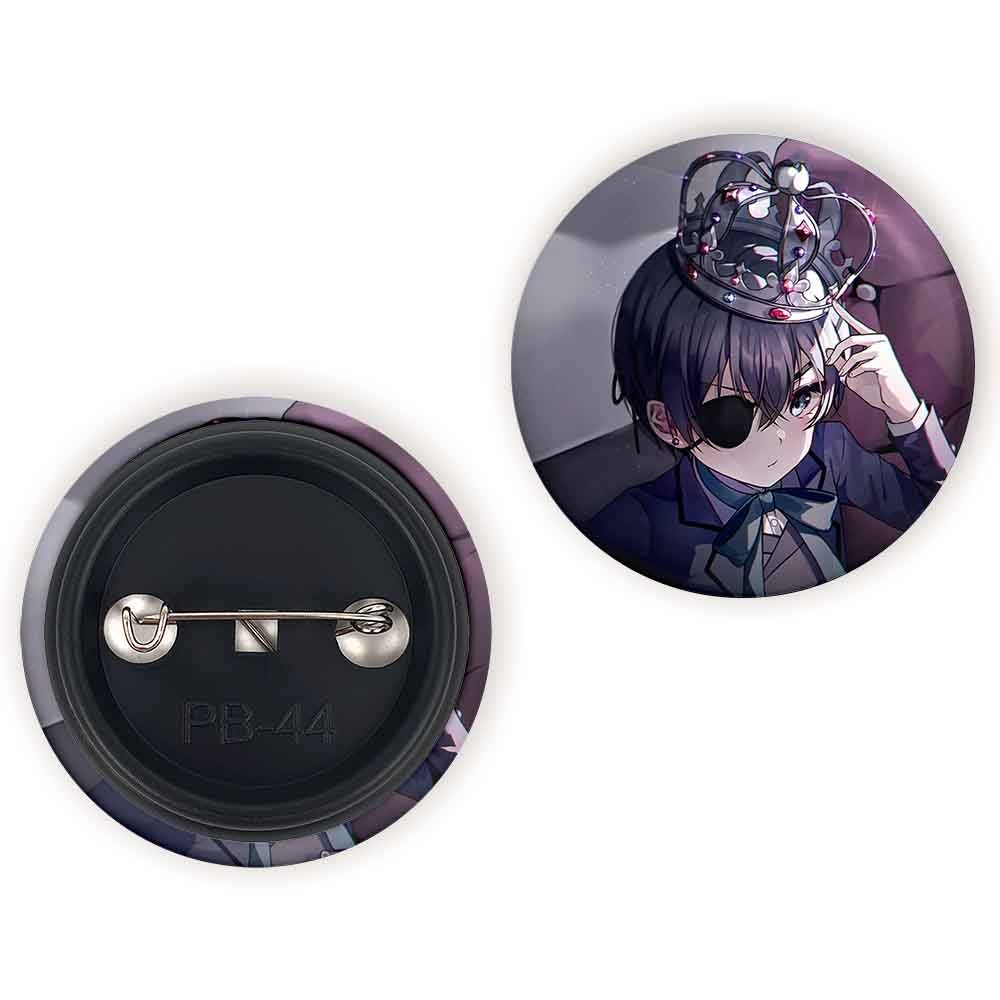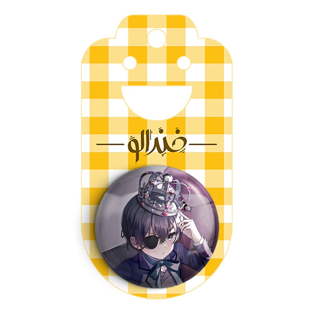 پیکسل 44 میلی متری شیل انیمه خادم سیاه Black Butler خندالو با روکش سلفون حرارتی مات مخملی ضدخش و قطعه پشتی رنگی تولید شده است.پلاستیکی پشت پیکسل با سوزن یک تکه ثابت و بدون لغزش و جا به جایی، ایستایی بسیار بهتری نسبت به پشتی فلزی پیکسل دارند که این مهم در تولید این محصول نیز رعایت شده است.