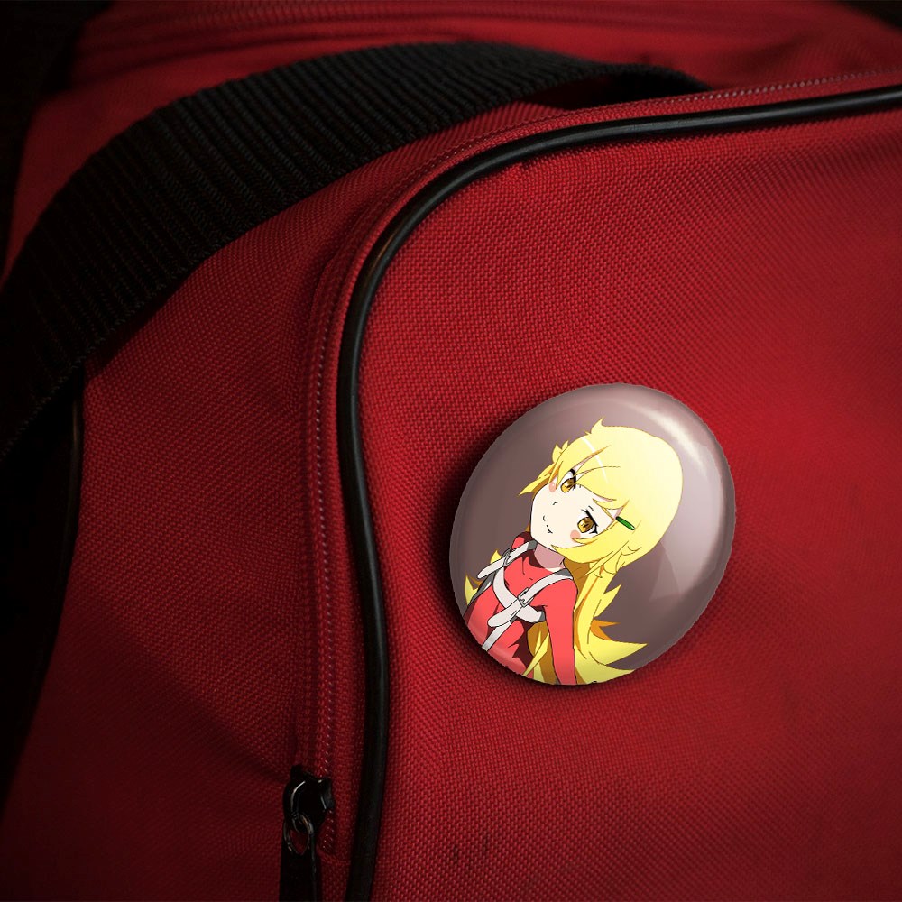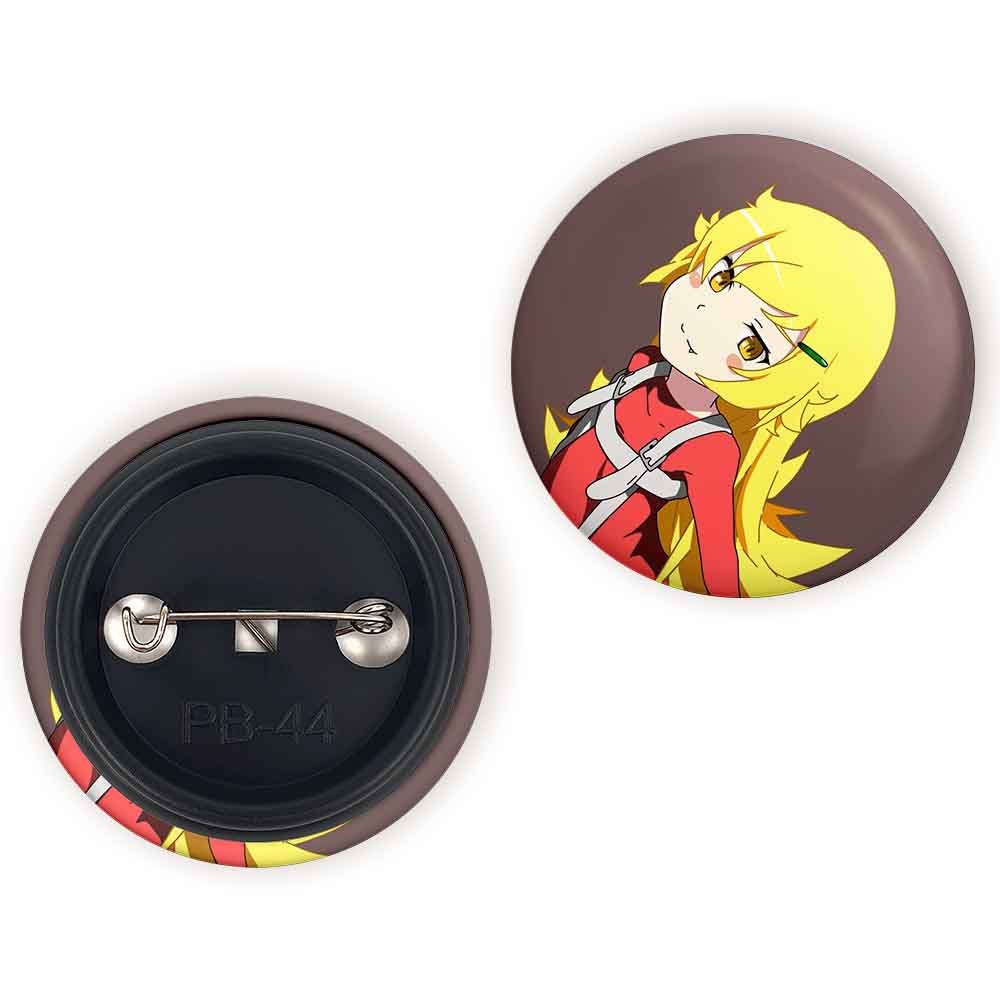 پیکسل 44 میلی متری شینوبو اوشینو انیمه مونوگاتاری خندالو با روکش سلفون حرارتی مات مخملی ضدخش و قطعه پشتی رنگی تولید شده است.پلاستیکی پشت پیکسل با سوزن یک تکه ثابت و بدون لغزش و جا به جایی، ایستایی بسیار بهتری نسبت به پشتی فلزی پیکسل دارند که این مهم در تولید این محصول نیز رعایت شده است.
