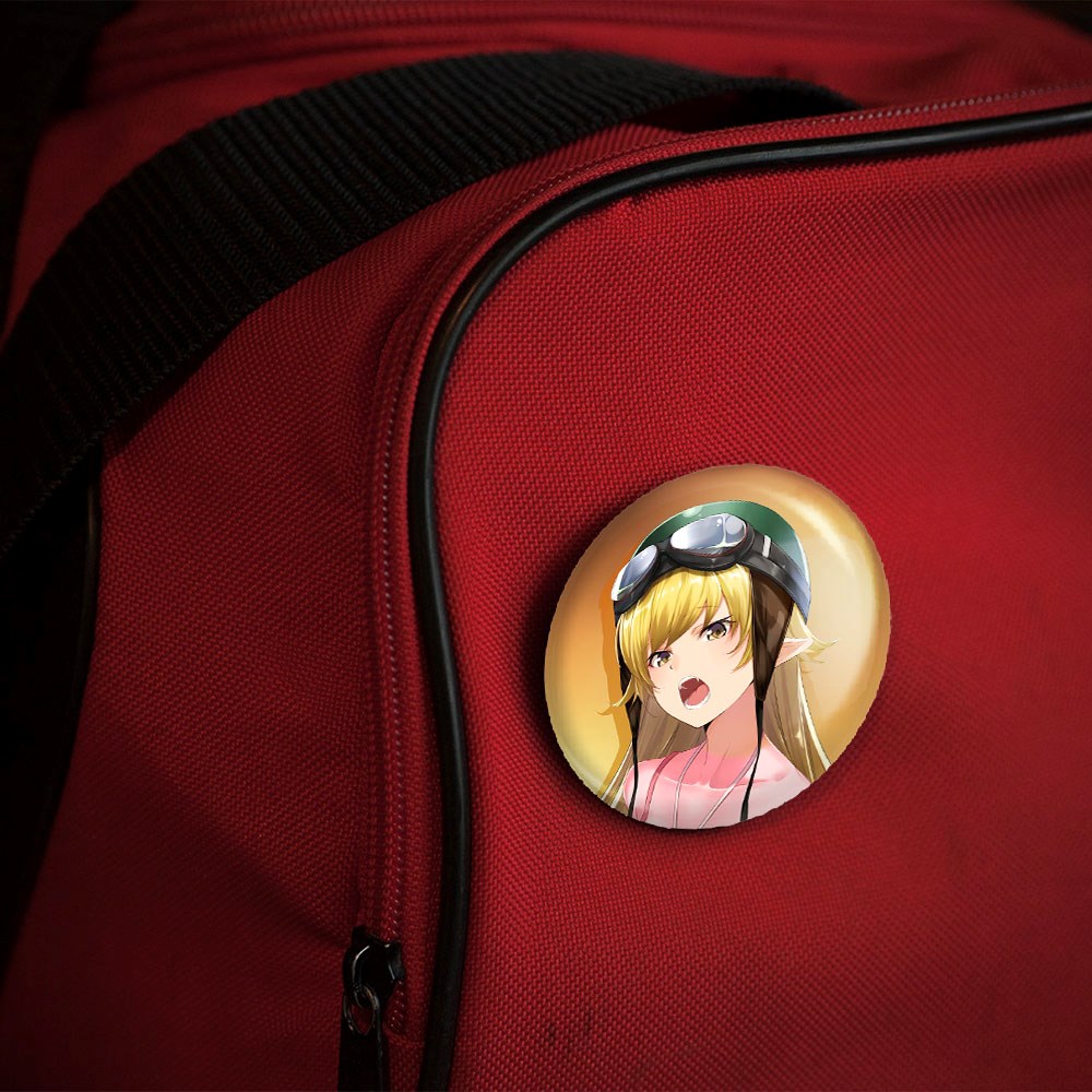 پیکسل 44 میلی متری شینوبو اوشینو انیمه مونوگاتاری خندالو با روکش سلفون حرارتی مات مخملی ضدخش و قطعه پشتی رنگی تولید شده است.پلاستیکی پشت پیکسل با سوزن یک تکه ثابت و بدون لغزش و جا به جایی، ایستایی بسیار بهتری نسبت به پشتی فلزی پیکسل دارند که این مهم در تولید این محصول نیز رعایت شده است.