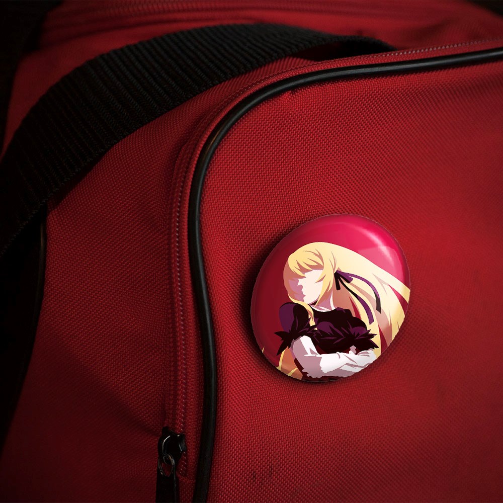 پیکسل 44 میلی متری شینوبو اوشینو انیمه مونوگاتاری خندالو با روکش سلفون حرارتی مات مخملی ضدخش و قطعه پشتی رنگی تولید شده است.پلاستیکی پشت پیکسل با سوزن یک تکه ثابت و بدون لغزش و جا به جایی، ایستایی بسیار بهتری نسبت به پشتی فلزی پیکسل دارند که این مهم در تولید این محصول نیز رعایت شده است.