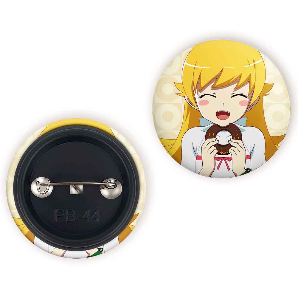 پیکسل 44 میلی متری شینوبو اوشینو انیمه مونوگاتاری خندالو با روکش سلفون حرارتی مات مخملی ضدخش و قطعه پشتی رنگی تولید شده است.پلاستیکی پشت پیکسل با سوزن یک تکه ثابت و بدون لغزش و جا به جایی، ایستایی بسیار بهتری نسبت به پشتی فلزی پیکسل دارند که این مهم در تولید این محصول نیز رعایت شده است.