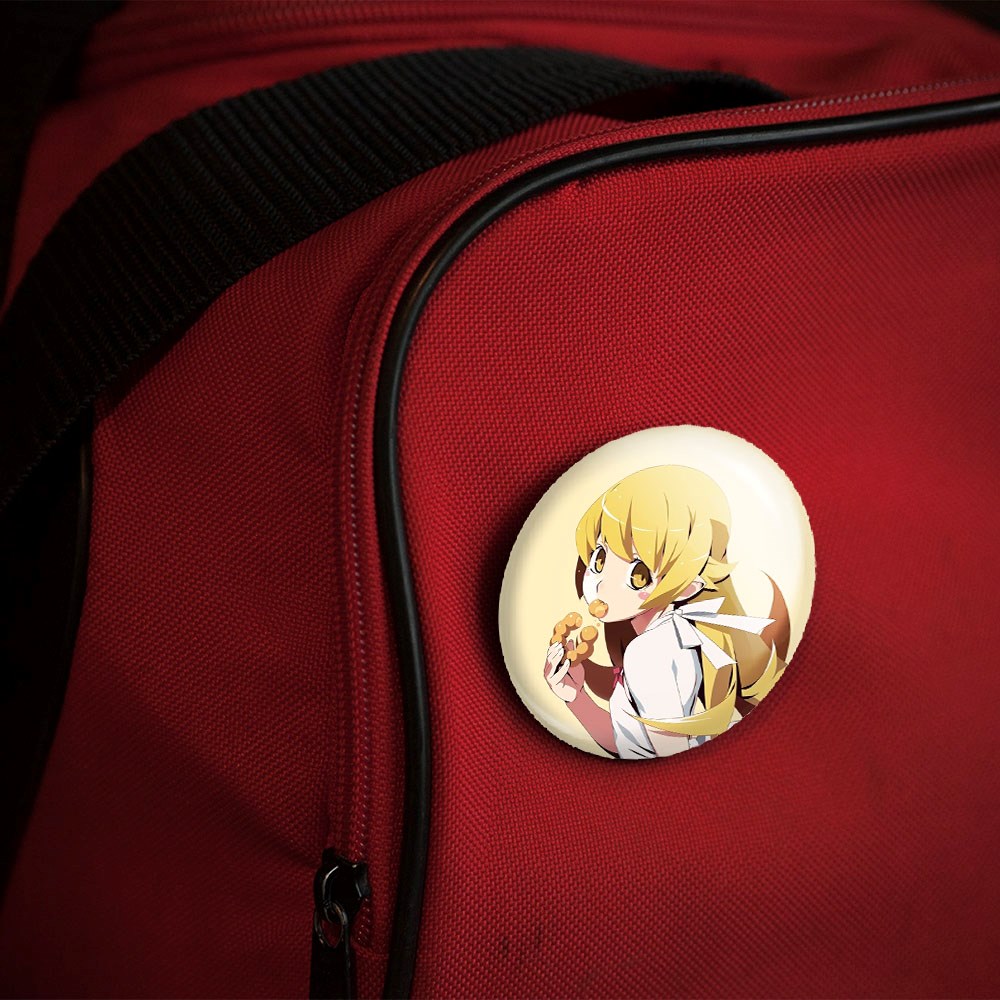 پیکسل 44 میلی متری شینوبو اوشینو انیمه مونوگاتاری خندالو با روکش سلفون حرارتی مات مخملی ضدخش و قطعه پشتی رنگی تولید شده است.پلاستیکی پشت پیکسل با سوزن یک تکه ثابت و بدون لغزش و جا به جایی، ایستایی بسیار بهتری نسبت به پشتی فلزی پیکسل دارند که این مهم در تولید این محصول نیز رعایت شده است.