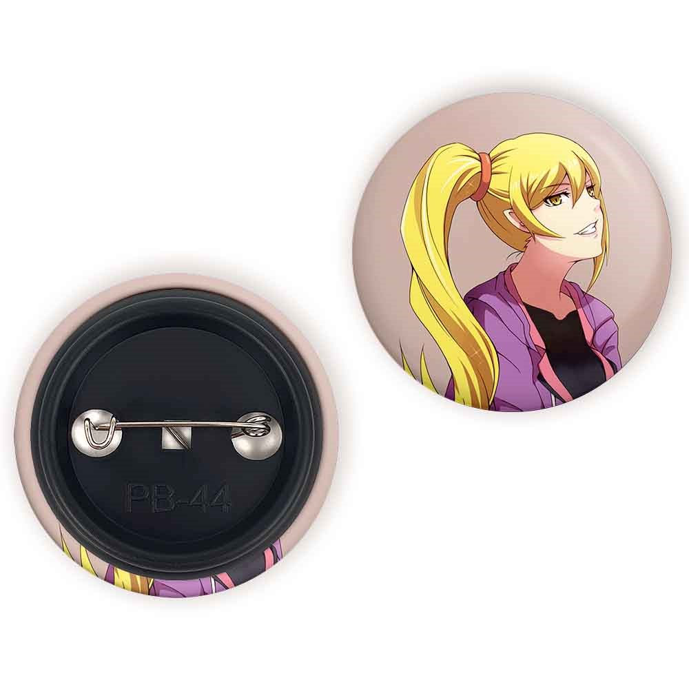 پیکسل 44 میلی متری شینوبو اوشینو انیمه مونوگاتاری خندالو با روکش سلفون حرارتی مات مخملی ضدخش و قطعه پشتی رنگی تولید شده است.پلاستیکی پشت پیکسل با سوزن یک تکه ثابت و بدون لغزش و جا به جایی، ایستایی بسیار بهتری نسبت به پشتی فلزی پیکسل دارند که این مهم در تولید این محصول نیز رعایت شده است.