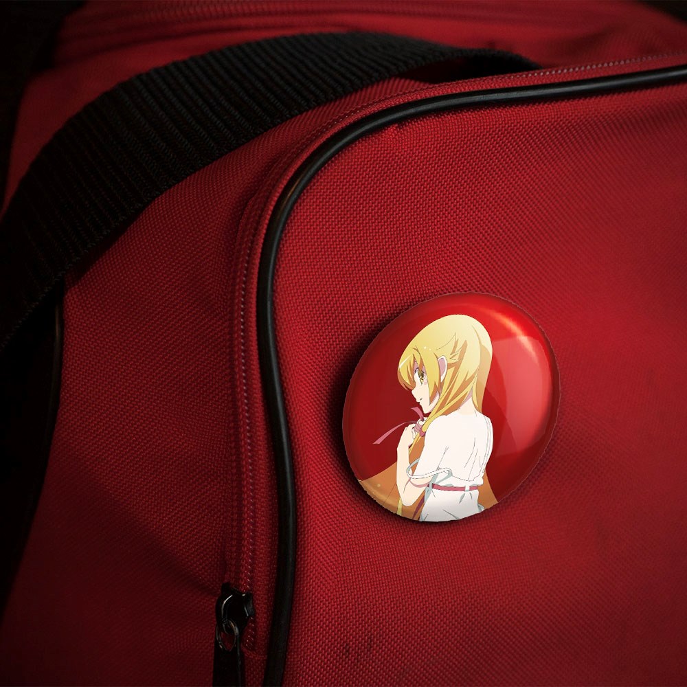 پیکسل 44 میلی متری شینوبو اوشینو انیمه مونوگاتاری خندالو با روکش سلفون حرارتی مات مخملی ضدخش و قطعه پشتی رنگی تولید شده است.پلاستیکی پشت پیکسل با سوزن یک تکه ثابت و بدون لغزش و جا به جایی، ایستایی بسیار بهتری نسبت به پشتی فلزی پیکسل دارند که این مهم در تولید این محصول نیز رعایت شده است.
