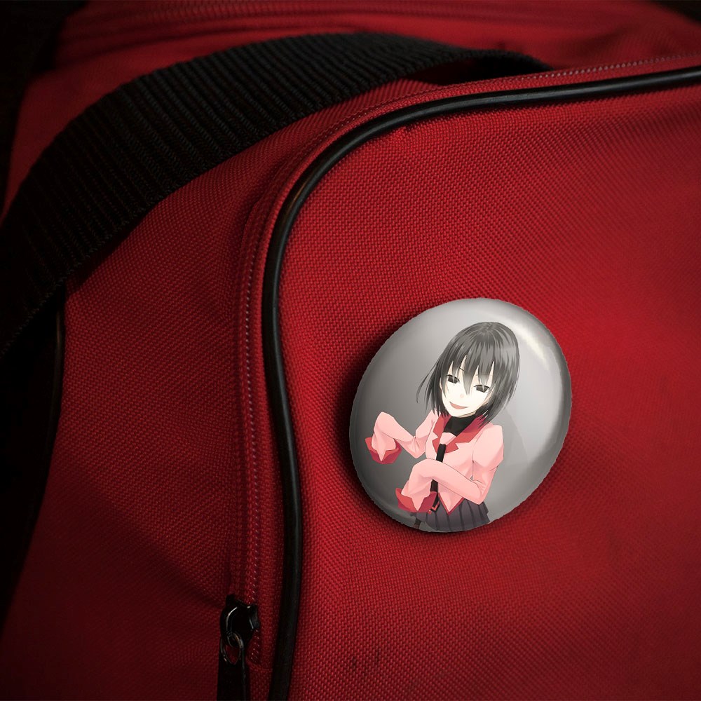 پیکسل 44 میلی متری شینوبو اوشینو انیمه مونوگاتاری خندالو با روکش سلفون حرارتی مات مخملی ضدخش و قطعه پشتی رنگی تولید شده است.پلاستیکی پشت پیکسل با سوزن یک تکه ثابت و بدون لغزش و جا به جایی، ایستایی بسیار بهتری نسبت به پشتی فلزی پیکسل دارند که این مهم در تولید این محصول نیز رعایت شده است.