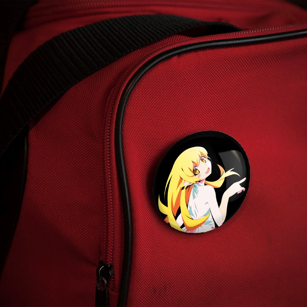 پیکسل 44 میلی متری شینوبو اوشینو انیمه مونوگاتاری خندالو با روکش سلفون حرارتی مات مخملی ضدخش و قطعه پشتی رنگی تولید شده است.پلاستیکی پشت پیکسل با سوزن یک تکه ثابت و بدون لغزش و جا به جایی، ایستایی بسیار بهتری نسبت به پشتی فلزی پیکسل دارند که این مهم در تولید این محصول نیز رعایت شده است.