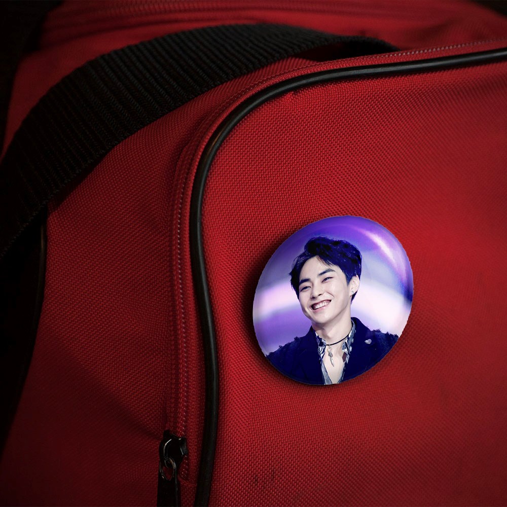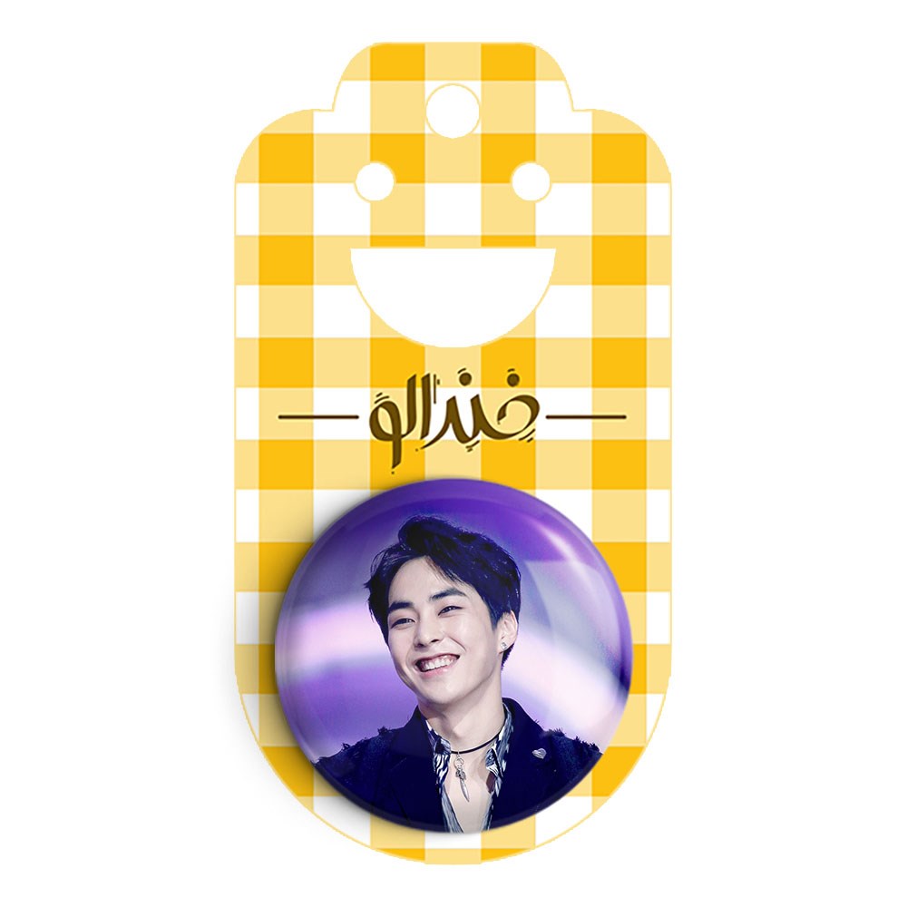 پیکسل 44 میلی متری شیومین گروه اکسو EXO خندالو با روکش سلفون حرارتی مات مخملی ضدخش و قطعه پشتی رنگی تولید شده است.پلاستیکی پشت پیکسل با سوزن یک تکه ثابت و بدون لغزش و جا به جایی، ایستایی بسیار بهتری نسبت به پشتی فلزی پیکسل دارند که این مهم در تولید این محصول نیز رعایت شده است.