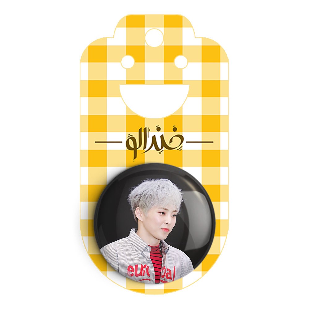 پیکسل 44 میلی متری شیومین گروه اکسو EXO خندالو با روکش سلفون حرارتی مات مخملی ضدخش و قطعه پشتی رنگی تولید شده است.پلاستیکی پشت پیکسل با سوزن یک تکه ثابت و بدون لغزش و جا به جایی، ایستایی بسیار بهتری نسبت به پشتی فلزی پیکسل دارند که این مهم در تولید این محصول نیز رعایت شده است.