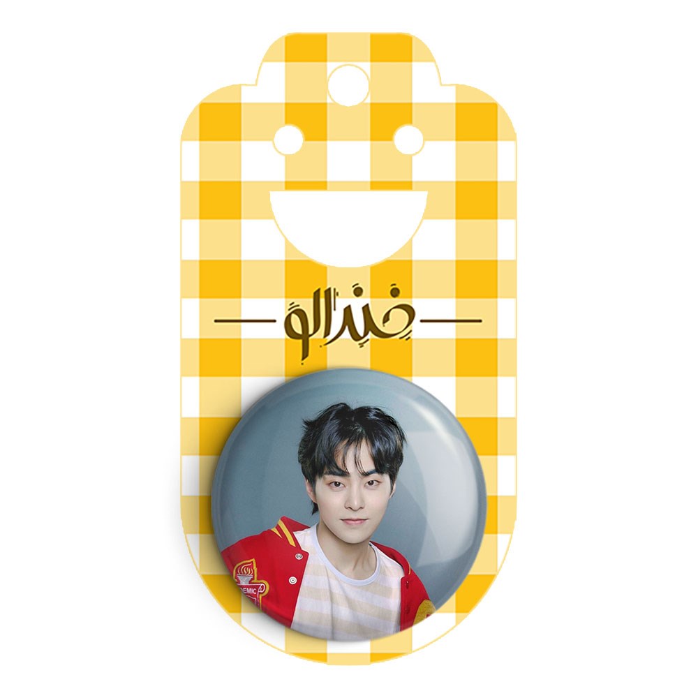 پیکسل 44 میلی متری شیومین گروه اکسو EXO خندالو با روکش سلفون حرارتی مات مخملی ضدخش و قطعه پشتی رنگی تولید شده است.پلاستیکی پشت پیکسل با سوزن یک تکه ثابت و بدون لغزش و جا به جایی، ایستایی بسیار بهتری نسبت به پشتی فلزی پیکسل دارند که این مهم در تولید این محصول نیز رعایت شده است.