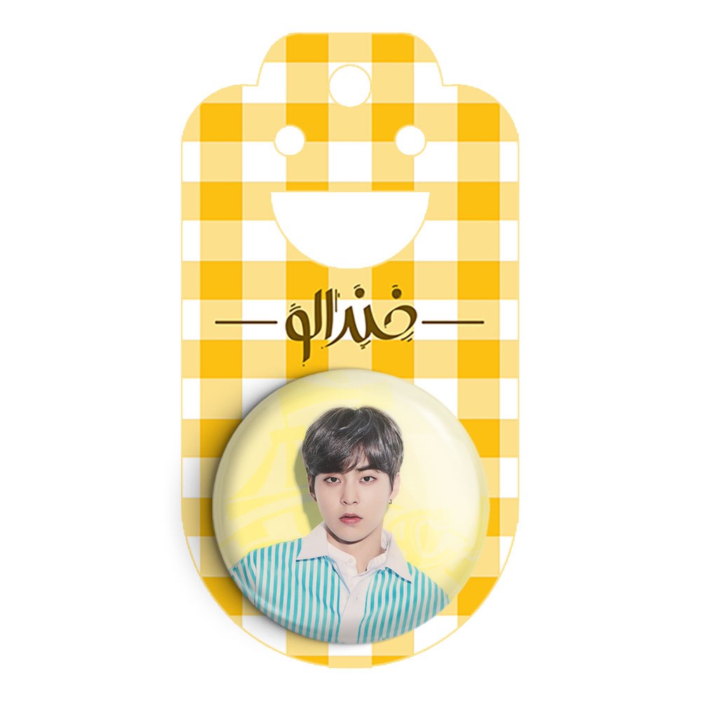 پیکسل 44 میلی متری شیومین گروه اکسو EXO خندالو با روکش سلفون حرارتی مات مخملی ضدخش و قطعه پشتی رنگی تولید شده است.پلاستیکی پشت پیکسل با سوزن یک تکه ثابت و بدون لغزش و جا به جایی، ایستایی بسیار بهتری نسبت به پشتی فلزی پیکسل دارند که این مهم در تولید این محصول نیز رعایت شده است.