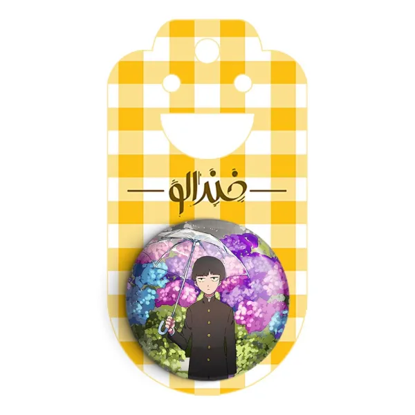 پیکسل 44 میلی متری شییکو انیمه موب سایکو Mob Psycho 100 خندالو با روکش سلفون حرارتی مات مخملی ضدخش و قطعه پشتی رنگی تولید شده است.پلاستیکی پشت پیکسل با سوزن یک تکه ثابت و بدون لغزش و جا به جایی، ایستایی بسیار بهتری نسبت به پشتی فلزی پیکسل دارند که این مهم در تولید این محصول نیز رعایت شده است.