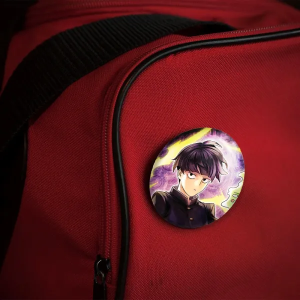 پیکسل 44 میلی متری شییکو انیمه موب سایکو Mob Psycho 100 خندالو با روکش سلفون حرارتی مات مخملی ضدخش و قطعه پشتی رنگی تولید شده است.پلاستیکی پشت پیکسل با سوزن یک تکه ثابت و بدون لغزش و جا به جایی، ایستایی بسیار بهتری نسبت به پشتی فلزی پیکسل دارند که این مهم در تولید این محصول نیز رعایت شده است.