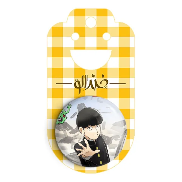 پیکسل 44 میلی متری شییکو انیمه موب سایکو Mob Psycho 100 خندالو با روکش سلفون حرارتی مات مخملی ضدخش و قطعه پشتی رنگی تولید شده است.پلاستیکی پشت پیکسل با سوزن یک تکه ثابت و بدون لغزش و جا به جایی، ایستایی بسیار بهتری نسبت به پشتی فلزی پیکسل دارند که این مهم در تولید این محصول نیز رعایت شده است.