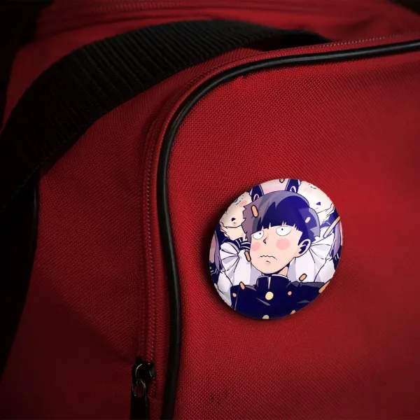 پیکسل 44 میلی متری شییکو انیمه موب سایکو Mob Psycho 100 خندالو با روکش سلفون حرارتی مات مخملی ضدخش و قطعه پشتی رنگی تولید شده است.پلاستیکی پشت پیکسل با سوزن یک تکه ثابت و بدون لغزش و جا به جایی، ایستایی بسیار بهتری نسبت به پشتی فلزی پیکسل دارند که این مهم در تولید این محصول نیز رعایت شده است.