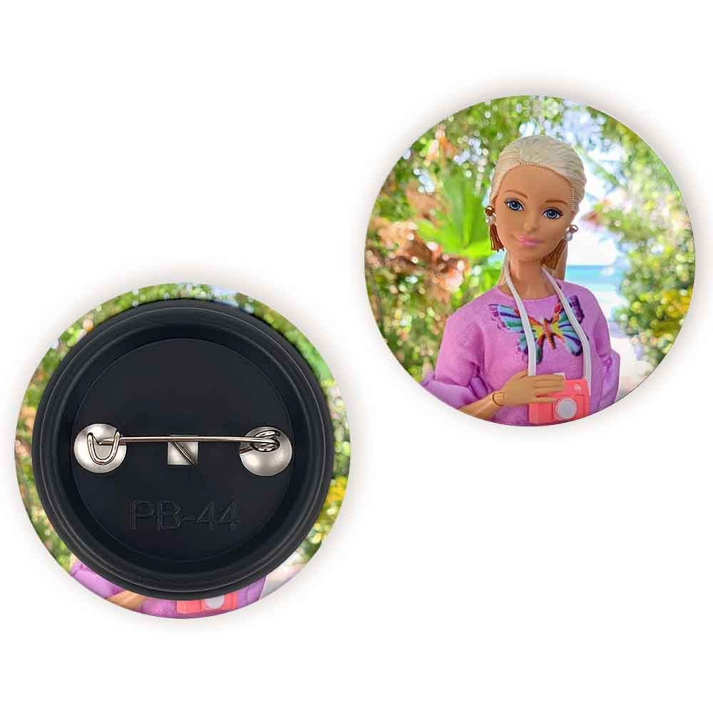پیکسل 44 میلی متری عروسک باربی خندالو با روکش سلفون حرارتی مات مخملی ضدخش و قطعه پشتی رنگی تولید شده است.پلاستیکی پشت پیکسل با سوزن یک تکه ثابت و بدون لغزش و جا به جایی، ایستایی بسیار بهتری نسبت به پشتی فلزی پیکسل دارند که این مهم در تولید این محصول نیز رعایت شده است.