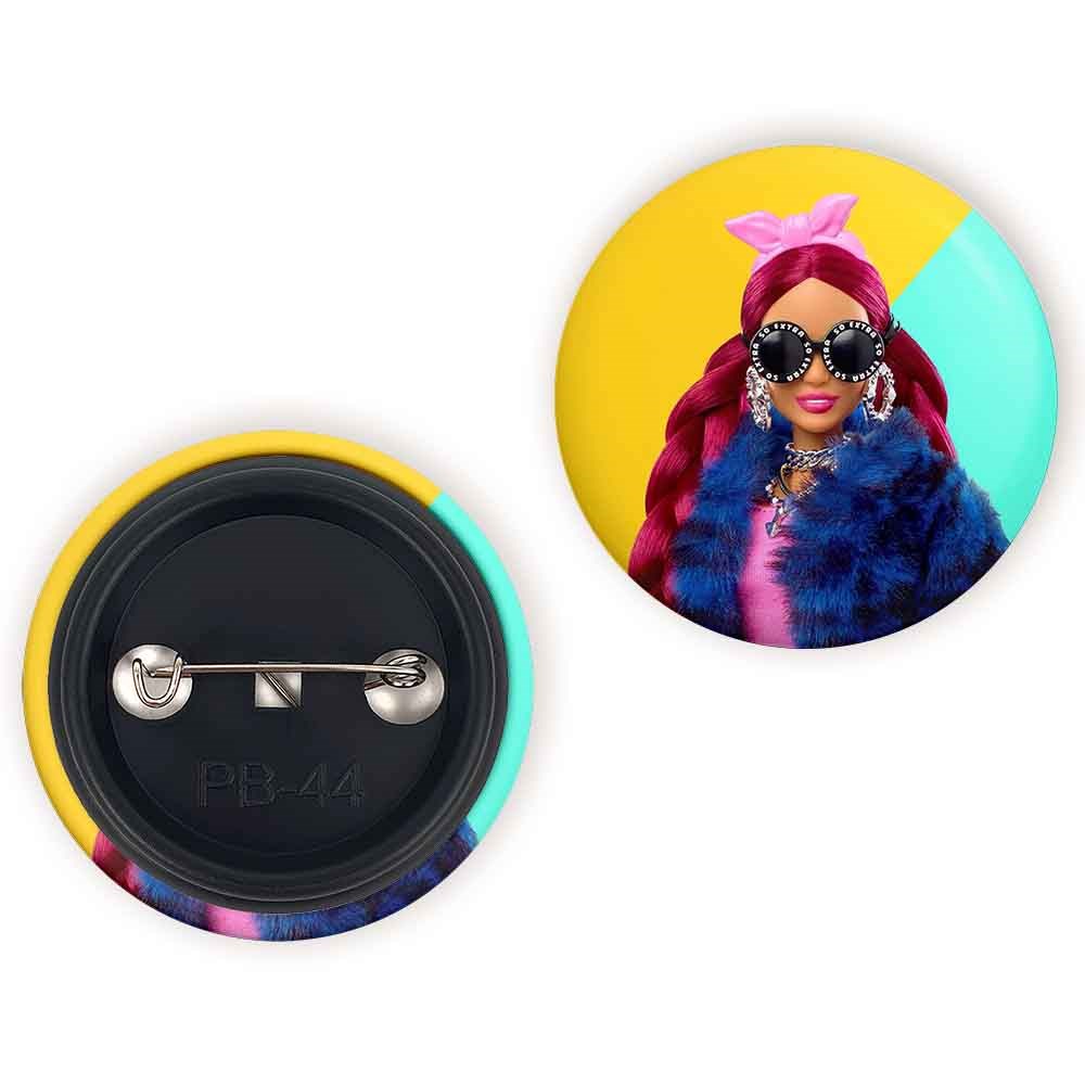 پیکسل 44 میلی متری عروسک باربی خندالو با روکش سلفون حرارتی مات مخملی ضدخش و قطعه پشتی رنگی تولید شده است.پلاستیکی پشت پیکسل با سوزن یک تکه ثابت و بدون لغزش و جا به جایی، ایستایی بسیار بهتری نسبت به پشتی فلزی پیکسل دارند که این مهم در تولید این محصول نیز رعایت شده است.
