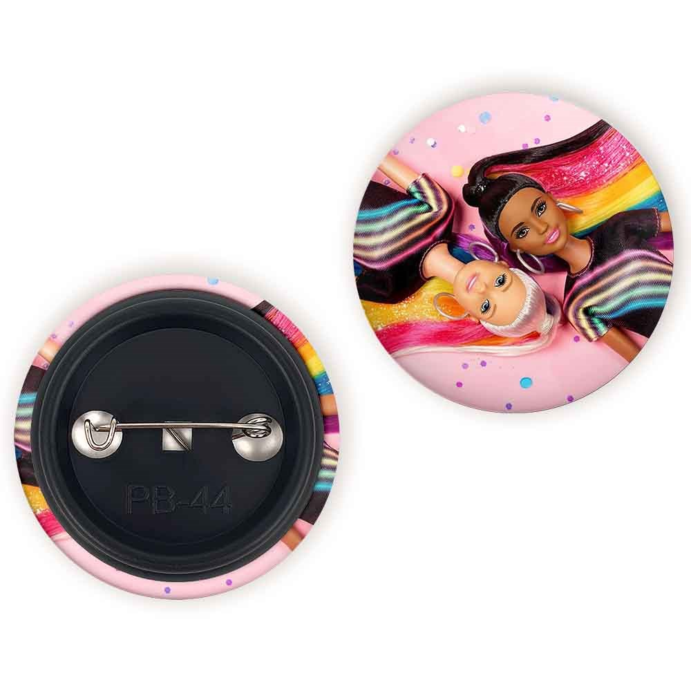 پیکسل 44 میلی متری عروسک باربی خندالو با روکش سلفون حرارتی مات مخملی ضدخش و قطعه پشتی رنگی تولید شده است.پلاستیکی پشت پیکسل با سوزن یک تکه ثابت و بدون لغزش و جا به جایی، ایستایی بسیار بهتری نسبت به پشتی فلزی پیکسل دارند که این مهم در تولید این محصول نیز رعایت شده است.