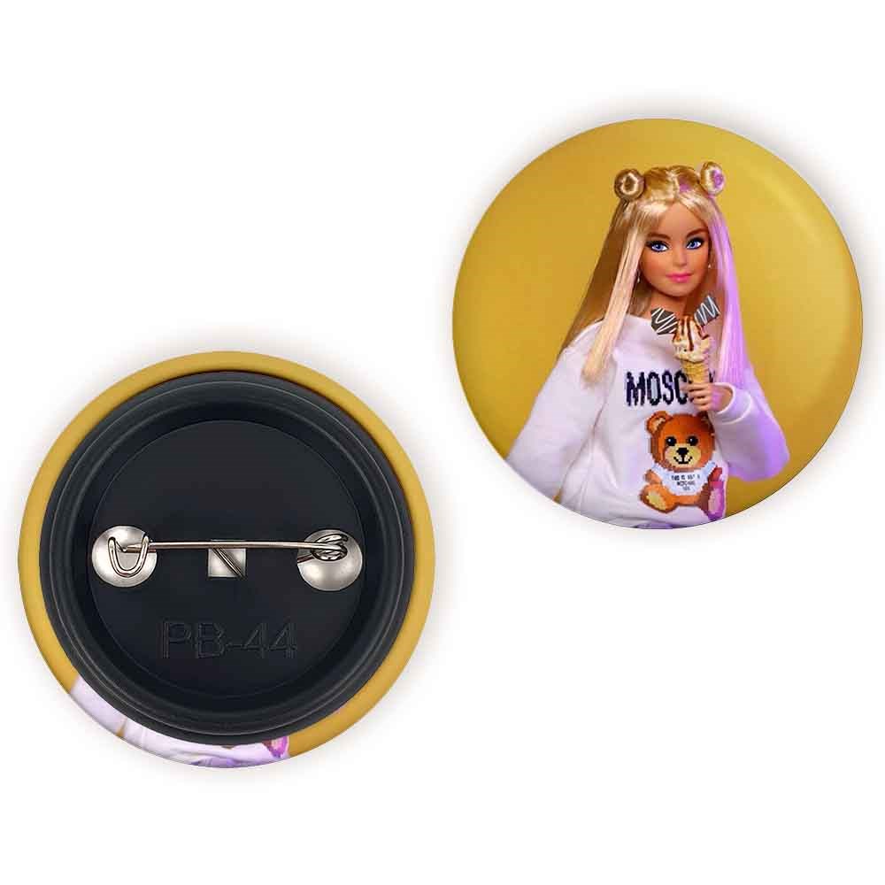 پیکسل 44 میلی متری عروسک باربی خندالو با روکش سلفون حرارتی مات مخملی ضدخش و قطعه پشتی رنگی تولید شده است.پلاستیکی پشت پیکسل با سوزن یک تکه ثابت و بدون لغزش و جا به جایی، ایستایی بسیار بهتری نسبت به پشتی فلزی پیکسل دارند که این مهم در تولید این محصول نیز رعایت شده است.