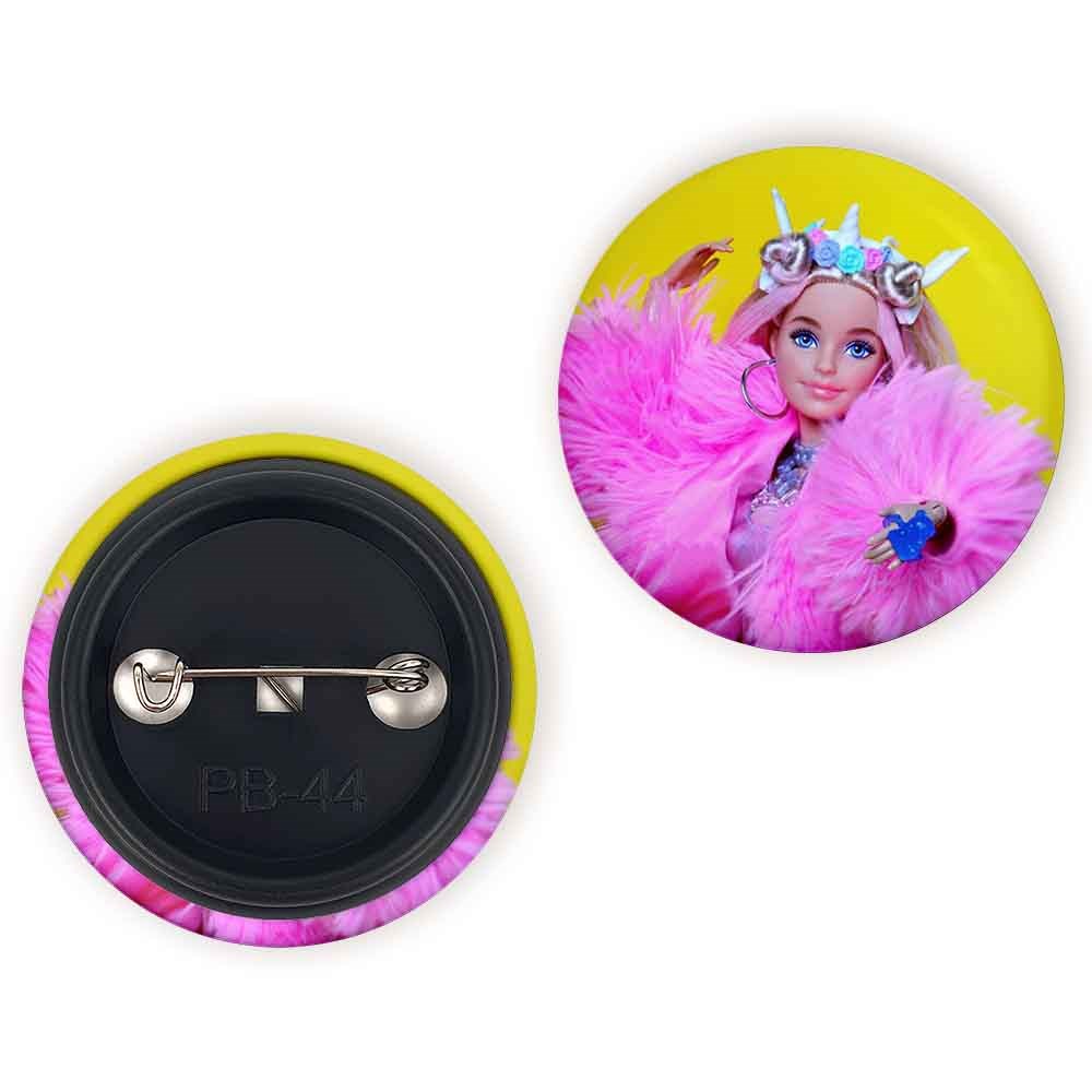 پیکسل 44 میلی متری عروسک باربی خندالو با روکش سلفون حرارتی مات مخملی ضدخش و قطعه پشتی رنگی تولید شده است.پلاستیکی پشت پیکسل با سوزن یک تکه ثابت و بدون لغزش و جا به جایی، ایستایی بسیار بهتری نسبت به پشتی فلزی پیکسل دارند که این مهم در تولید این محصول نیز رعایت شده است.