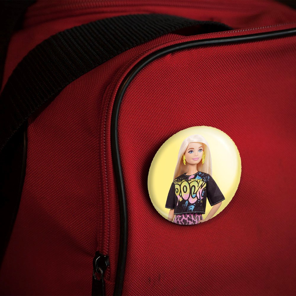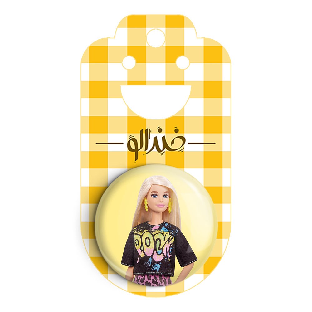 پیکسل 44 میلی متری عروسک باربی خندالو با روکش سلفون حرارتی مات مخملی ضدخش و قطعه پشتی رنگی تولید شده است.پلاستیکی پشت پیکسل با سوزن یک تکه ثابت و بدون لغزش و جا به جایی، ایستایی بسیار بهتری نسبت به پشتی فلزی پیکسل دارند که این مهم در تولید این محصول نیز رعایت شده است.