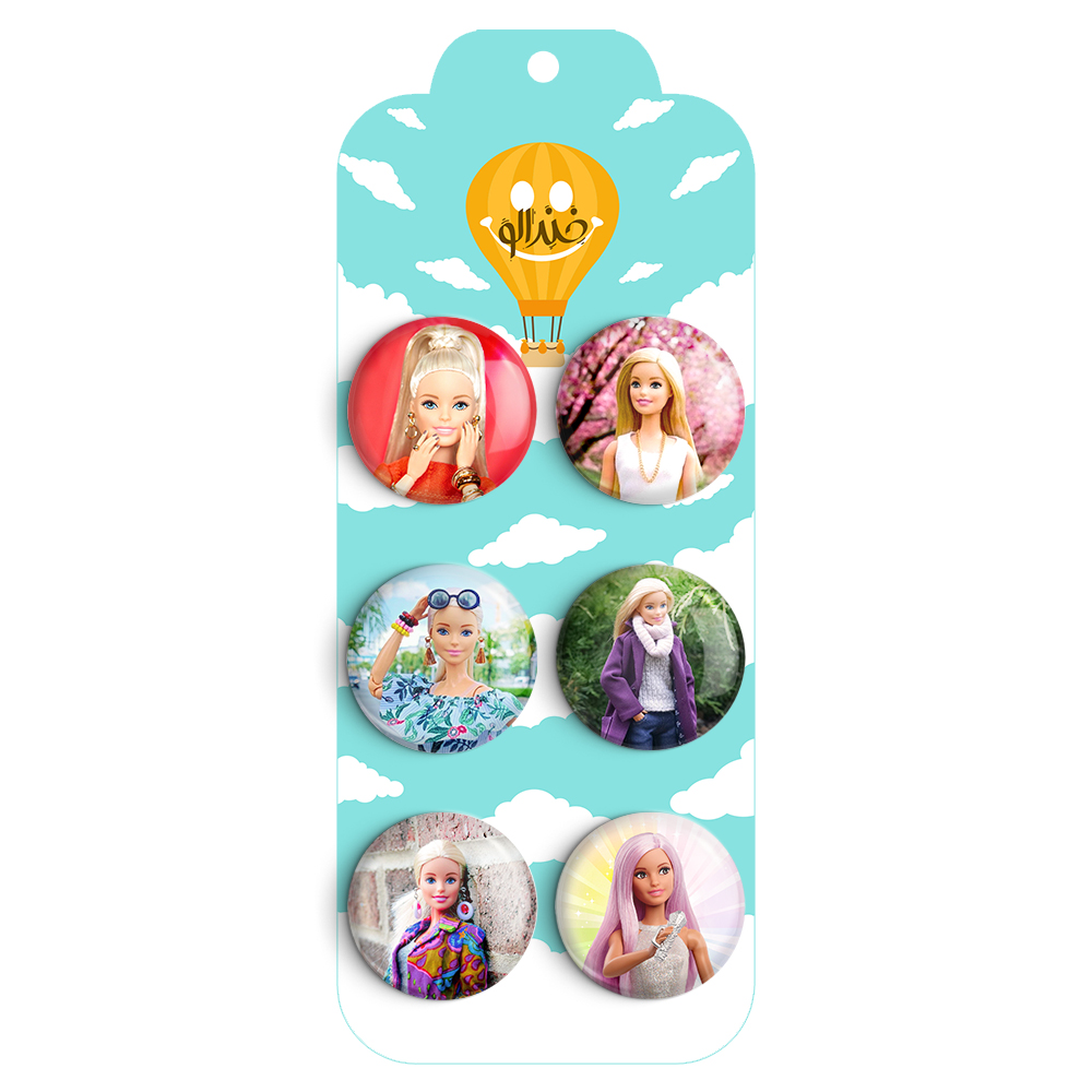 مجموعه 6 عددی پیکسل خندالو طرح عروسک باربی با روکش سلفون حرارتی براق ضدخش و قطعه پشتی رنگی تولید شده است. قطعات پشتی از میان 6 رنگ سفید، مشکی، صورتی، زرد، آبی و قرمز که با توجه به نوع و رنگبندی طرح روی پیکسل انتخاب شده اند تولید می شود و در هر بسته بندی مطابق عکس محصول می باشد.