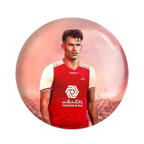 پیکسل 44 میلی متری عیسی آل کثیر پرسپولیس خندالو با روکش سلفون حرارتی مات مخملی ضدخش و قطعه پشتی رنگی تولید شده است.پلاستیکی پشت پیکسل با سوزن یک تکه ثابت و بدون لغزش و جا به جایی، ایستایی بسیار بهتری نسبت به پشتی فلزی پیکسل دارند که این مهم در تولید این محصول نیز رعایت شده است.