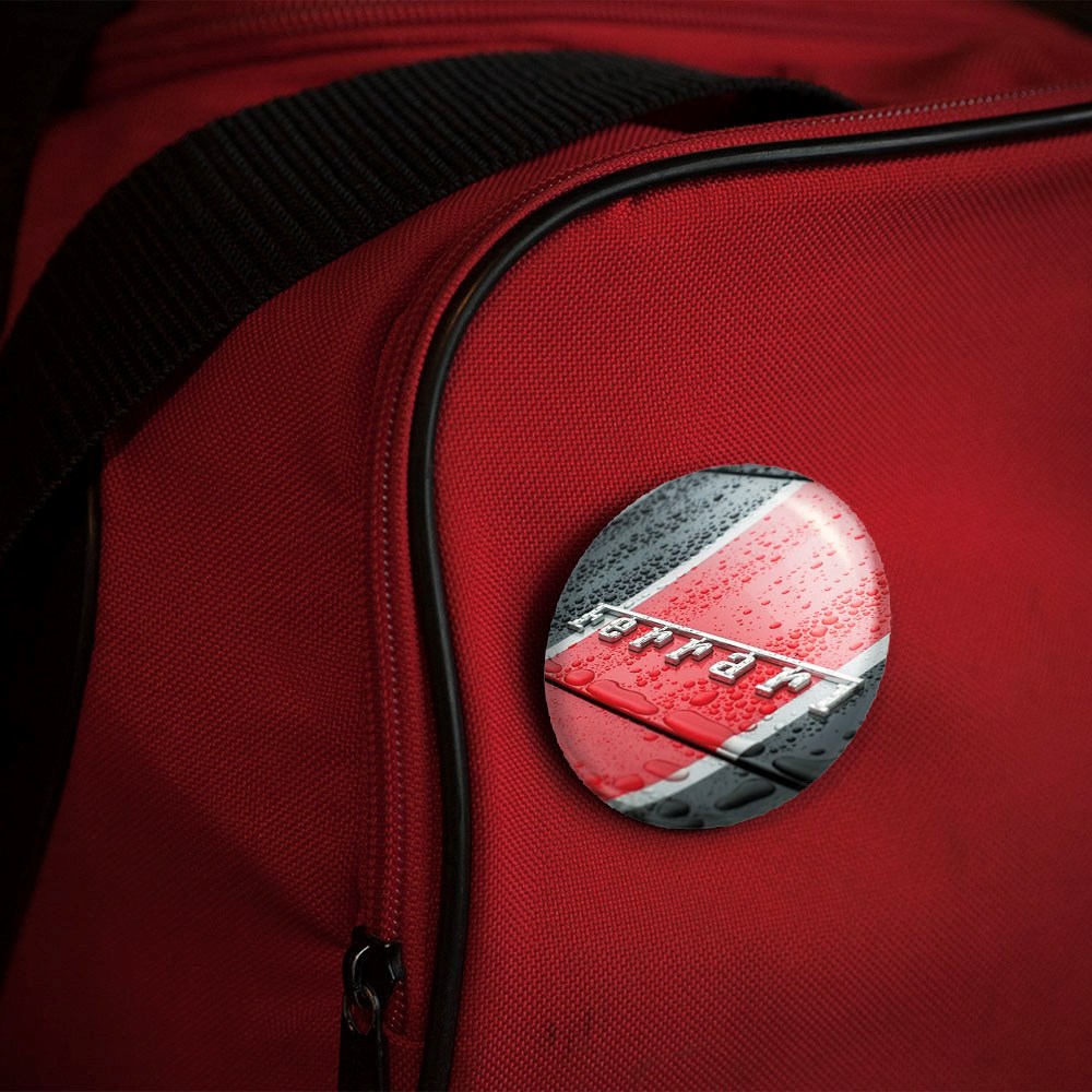 پیکسل 44 میلی متری فراری Ferrari خندالو با روکش سلفون حرارتی مات مخملی ضدخش و قطعه پشتی رنگی تولید شده است.پلاستیکی پشت پیکسل با سوزن یک تکه ثابت و بدون لغزش و جا به جایی، ایستایی بسیار بهتری نسبت به پشتی فلزی پیکسل دارند که این مهم در تولید این محصول نیز رعایت شده است.