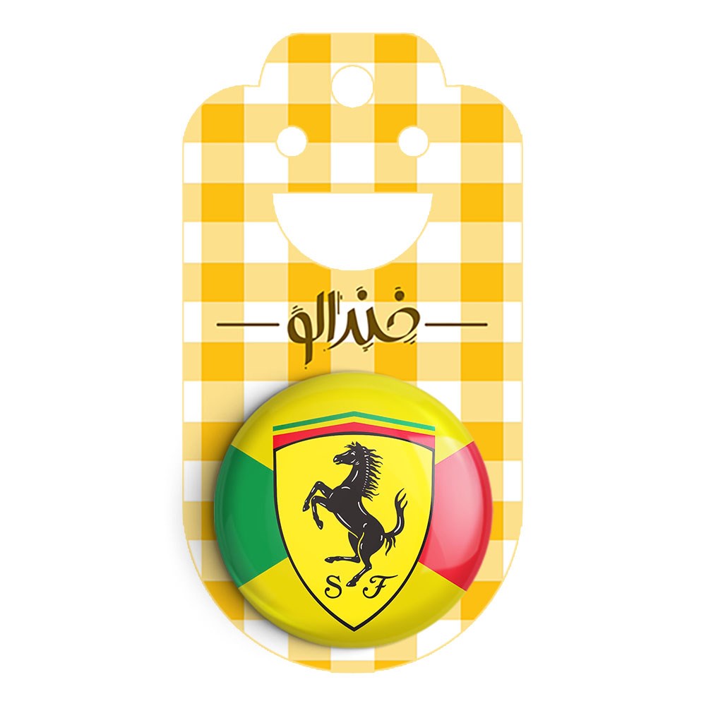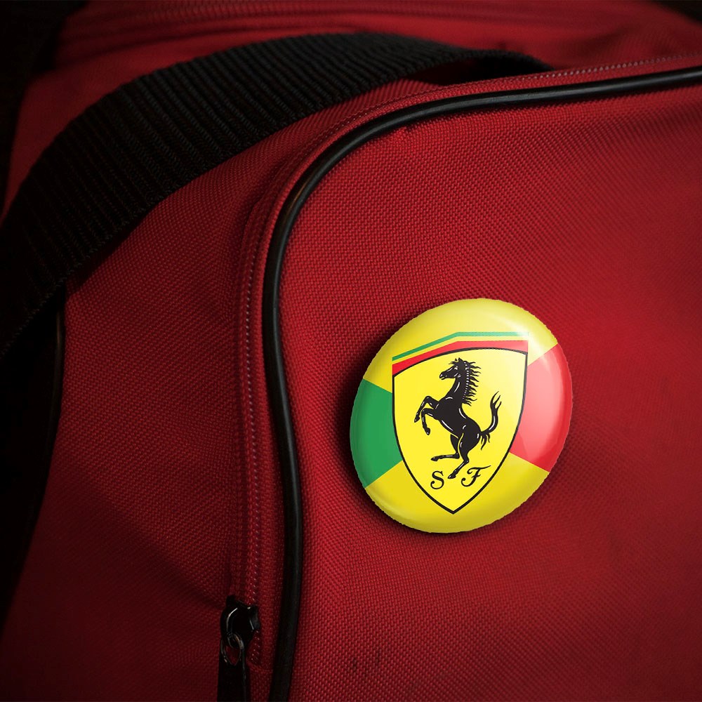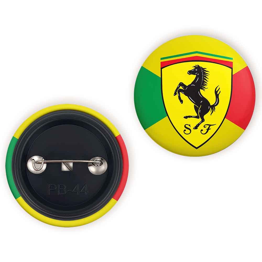 پیکسل 44 میلی متری فراری Ferrari خندالو با روکش سلفون حرارتی مات مخملی ضدخش و قطعه پشتی رنگی تولید شده است.پلاستیکی پشت پیکسل با سوزن یک تکه ثابت و بدون لغزش و جا به جایی، ایستایی بسیار بهتری نسبت به پشتی فلزی پیکسل دارند که این مهم در تولید این محصول نیز رعایت شده است.