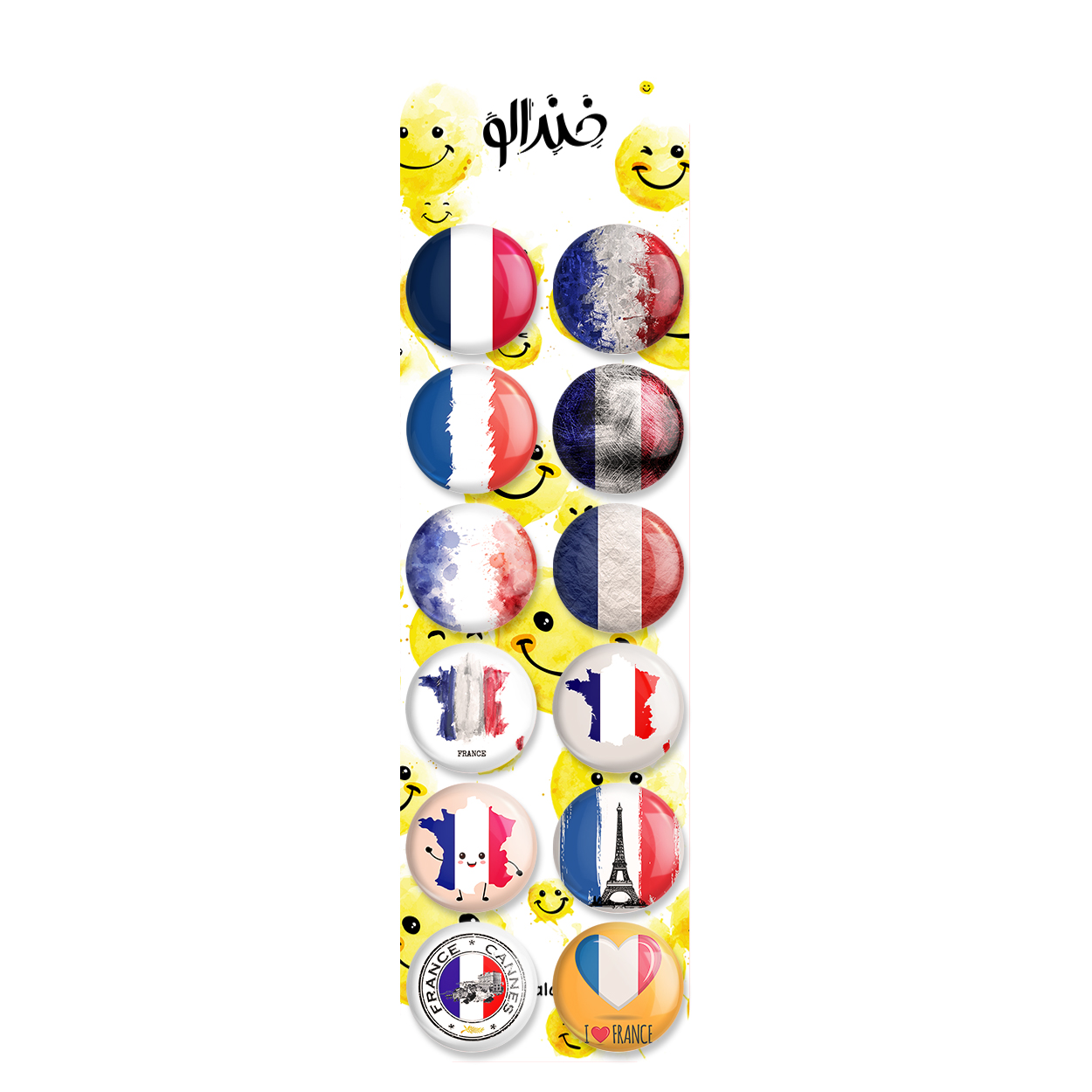پک 12 عددی پیکسل خندالو طرح فرانسه (France) با روکش سلفون حرارتی براق ضدخش و قطعه پشتی رنگی تولید شده است. قطعات پشتی از میان 6 رنگ سفید، مشکی، صورتی، زرد، آبی و قرمز که با توجه به نوع و رنگبندی طرح روی پیکسل انتخاب شده اند تولید می شود و در هر بسته بندی مطابق عکس محصول می باشد. قطعات پلاستیکی پشت پیکسل با سوزن یک تکه ثابت و بدون لغزش و جا به جایی، ایستایی بسیار بهتری نسبت به پشتی فلزی پیکسل دارند که این مهم در تولید این محصول نیز رعایت شده است. چاپ پیکسل طرح فرانسه (France) بسته ۱۲ عددی نیز با دستگاه های استاندارد و با بهترین سطح کیفی صورت گرفته و طرح با شفافیتی مثال زدنی و با سلفونی بدون شکست نور بر روی پیکسل نقش بسته است.
