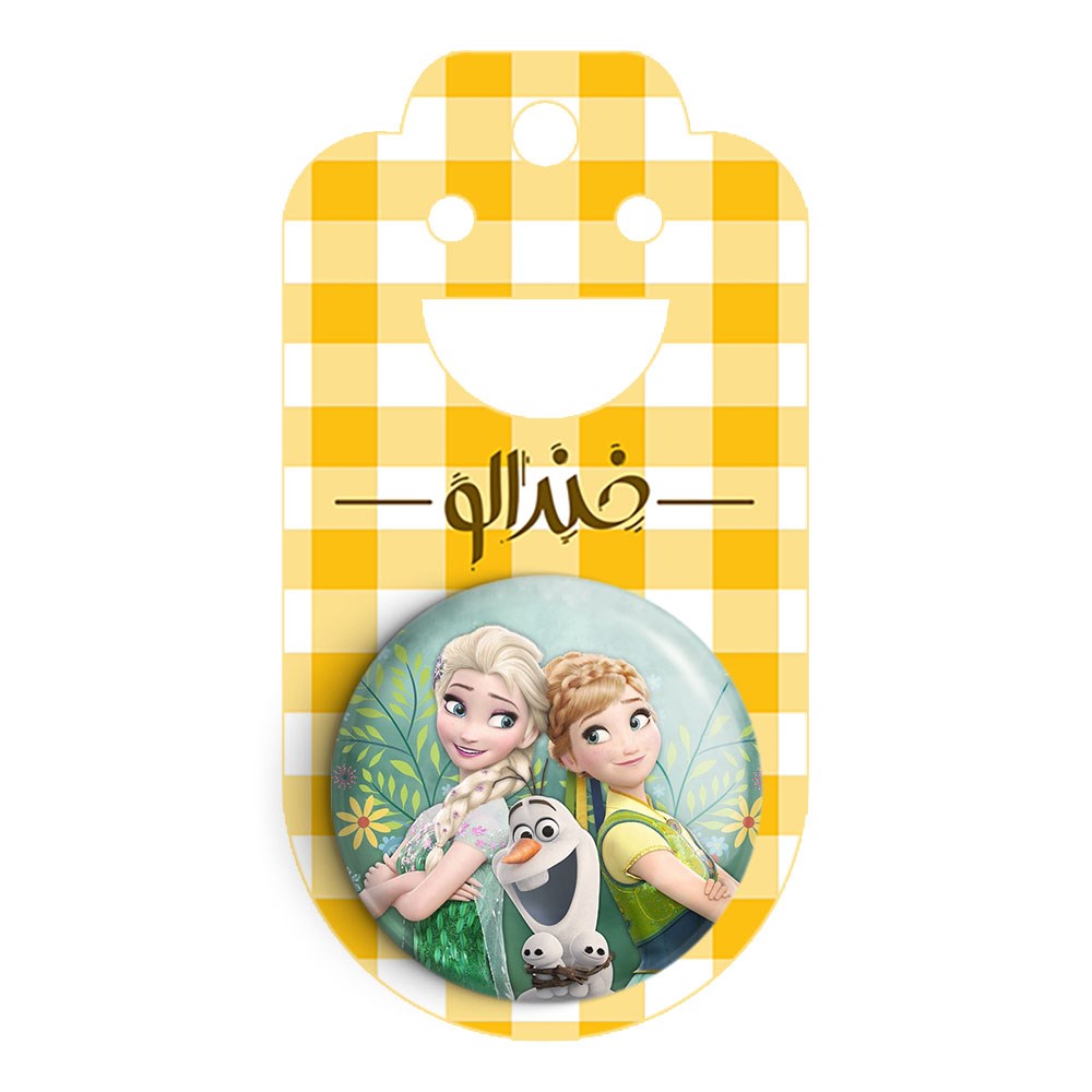 پیکسل 44 میلی متری فروزن السا و آنا خندالو با روکش سلفون حرارتی مات مخملی ضدخش و قطعه پشتی رنگی تولید شده است.پلاستیکی پشت پیکسل با سوزن یک تکه ثابت و بدون لغزش و جا به جایی، ایستایی بسیار بهتری نسبت به پشتی فلزی پیکسل دارند که این مهم در تولید این محصول نیز رعایت شده است.