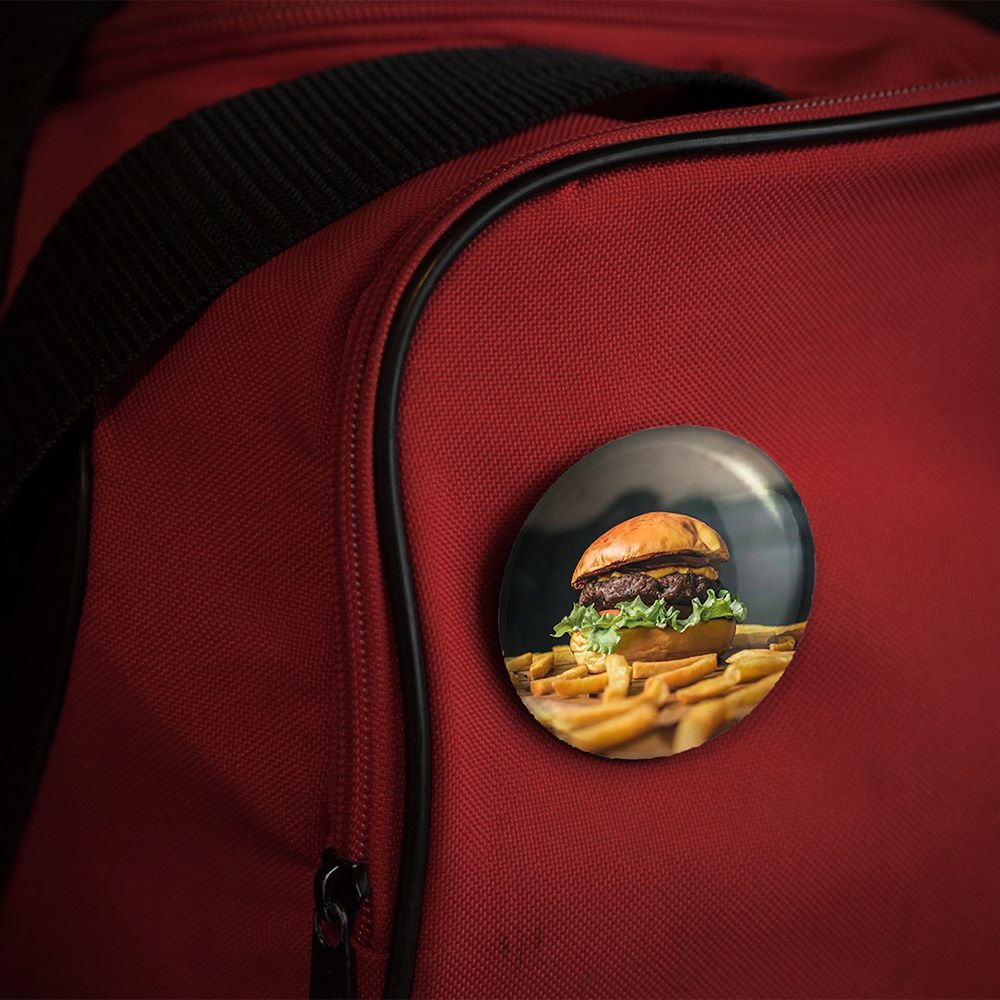 پیکسل 44 میلی متری فست فودخندالو با روکش سلفون حرارتی مات مخملی ضدخش و قطعه پشتی رنگی تولید شده است. قطعات پلاستیکی پشت پیکسل با سوزن یک تکه ثابت و بدون لغزش و جا به جایی، ایستایی بسیار بهتری نسبت به پشتی فلزی پیکسل دارند که این مهم در تولید این محصول نیز رعایت شده است.