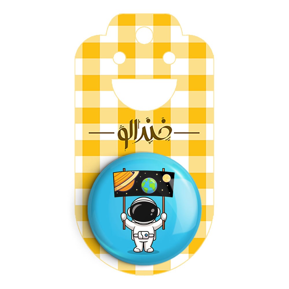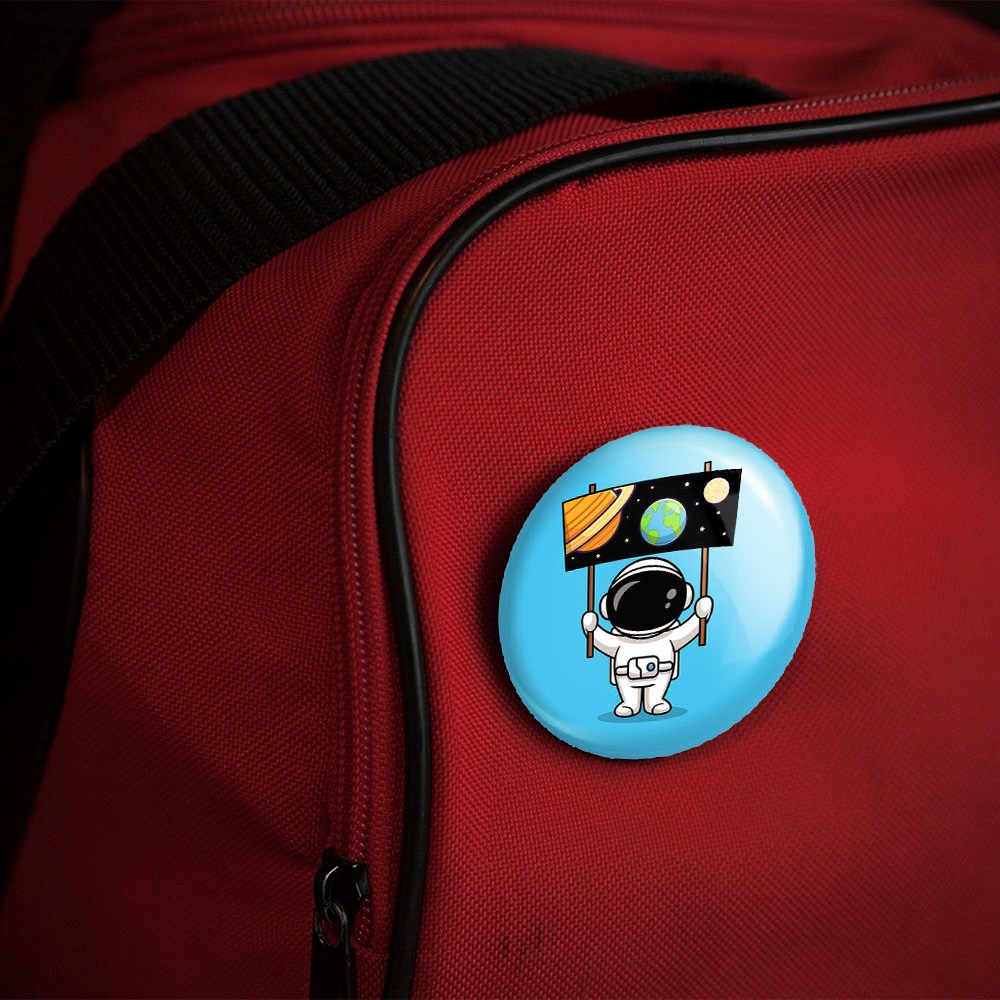 پیکسل 44 میلی متری فضانورد خندالو با روکش سلفون حرارتی مات مخملی ضدخش و قطعه پشتی رنگی تولید شده است.پلاستیکی پشت پیکسل با سوزن یک تکه ثابت و بدون لغزش و جا به جایی، ایستایی بسیار بهتری نسبت به پشتی فلزی پیکسل دارند که این مهم در تولید این محصول نیز رعایت شده است.