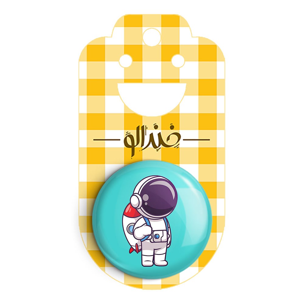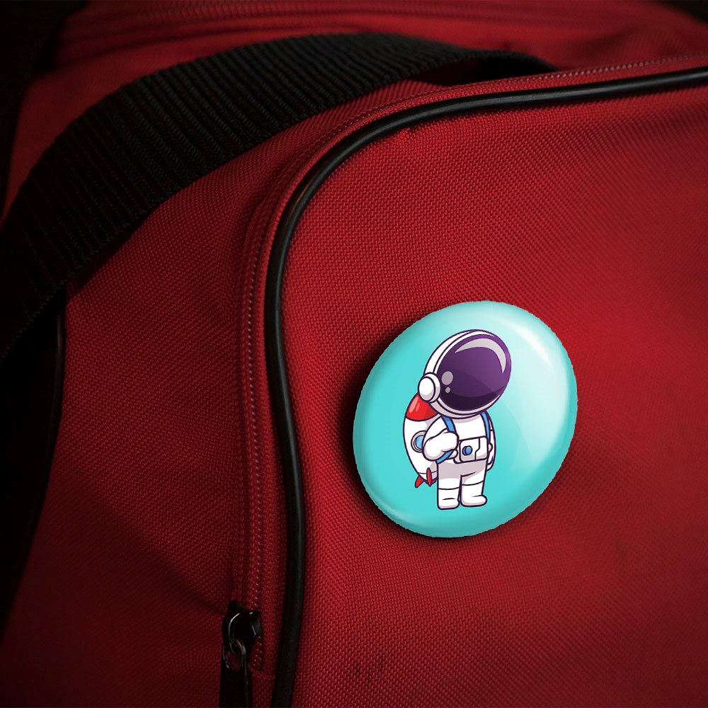 پیکسل 44 میلی متری فضانورد خندالو با روکش سلفون حرارتی مات مخملی ضدخش و قطعه پشتی رنگی تولید شده است.پلاستیکی پشت پیکسل با سوزن یک تکه ثابت و بدون لغزش و جا به جایی، ایستایی بسیار بهتری نسبت به پشتی فلزی پیکسل دارند که این مهم در تولید این محصول نیز رعایت شده است.