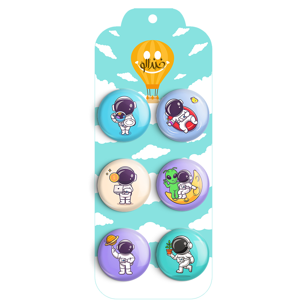 مجموعه 6 عددی پیکسل خندالو طرح فضانورد با روکش سلفون حرارتی براق ضدخش و قطعه پشتی رنگی تولید شده است. قطعات پشتی از میان 6 رنگ سفید، مشکی، صورتی، زرد، آبی و قرمز که با توجه به نوع و رنگبندی طرح روی پیکسل انتخاب شده اند تولید می شود و در هر بسته بندی مطابق عکس محصول می باشد.