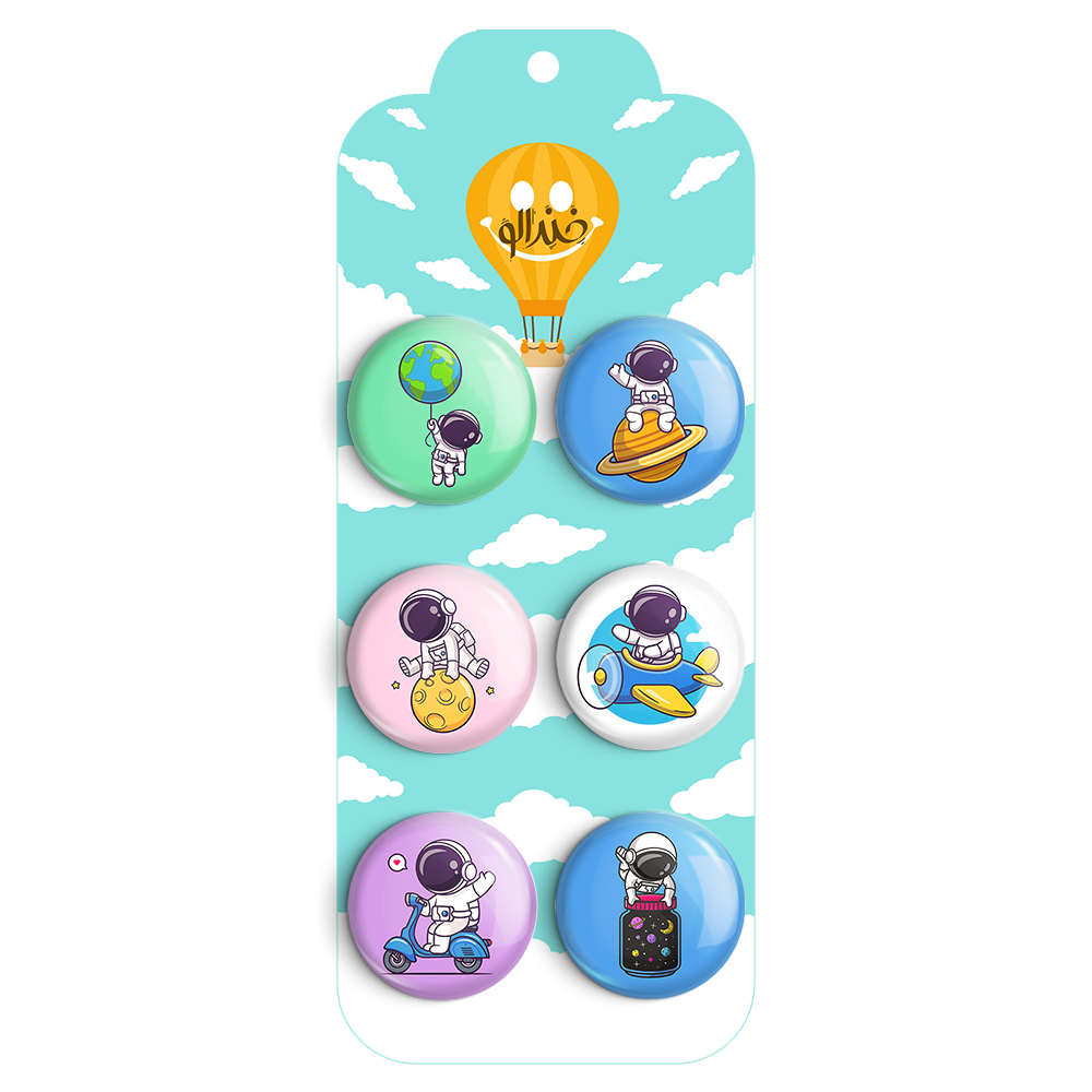 مجموعه 6 عددی پیکسل خندالو طرح فضانورد با روکش سلفون حرارتی براق ضدخش و قطعه پشتی رنگی تولید شده است. قطعات پشتی از میان 6 رنگ سفید، مشکی، صورتی، زرد، آبی و قرمز که با توجه به نوع و رنگبندی طرح روی پیکسل انتخاب شده اند تولید می شود و در هر بسته بندی مطابق عکس محصول می باشد.