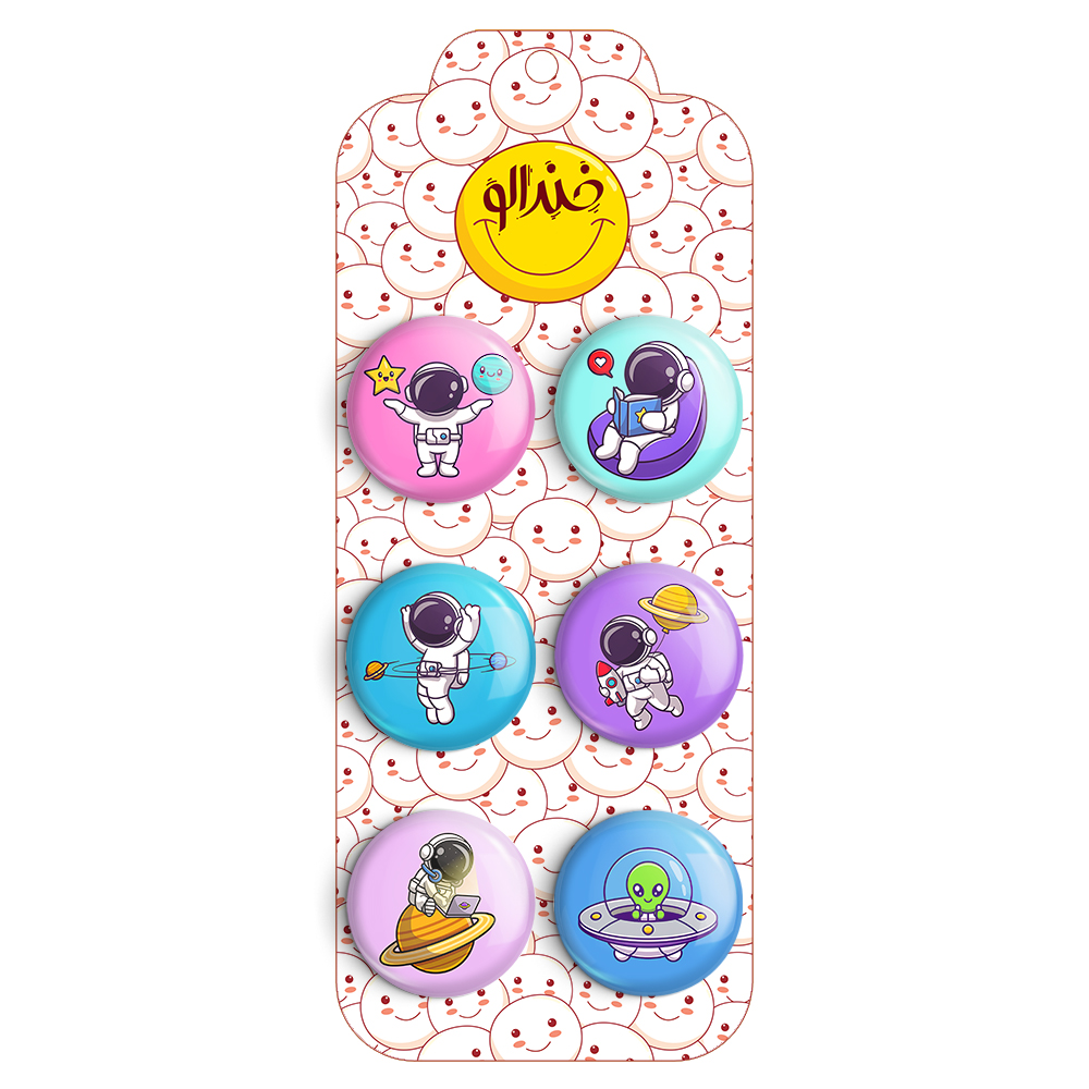 مجموعه 6 عددی پیکسل خندالو طرح فضانورد با روکش سلفون حرارتی براق ضدخش و قطعه پشتی رنگی تولید شده است. قطعات پشتی از میان 6 رنگ سفید، مشکی، صورتی، زرد، آبی و قرمز که با توجه به نوع و رنگبندی طرح روی پیکسل انتخاب شده اند تولید می شود و در هر بسته بندی مطابق عکس محصول می باشد.