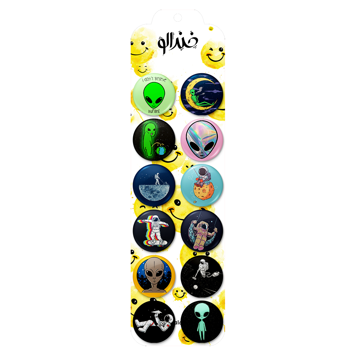 پک 12 عددی پیکسل خندالو طرح فضایی (Spatial) با روکش سلفون حرارتی براق ضدخش و قطعه پشتی رنگی تولید شده است. قطعات پشتی از میان 6 رنگ سفید، مشکی، صورتی، زرد، آبی و قرمز که با توجه به نوع و رنگبندی طرح روی پیکسل انتخاب شده اند تولید می شود و در هر بسته بندی مطابق عکس محصول می باشد. قطعات پلاستیکی پشت پیکسل با سوزن یک تکه ثابت و بدون لغزش و جا به جایی، ایستایی بسیار بهتری نسبت به پشتی فلزی پیکسل دارند که این مهم در تولید این محصول نیز رعایت شده است.