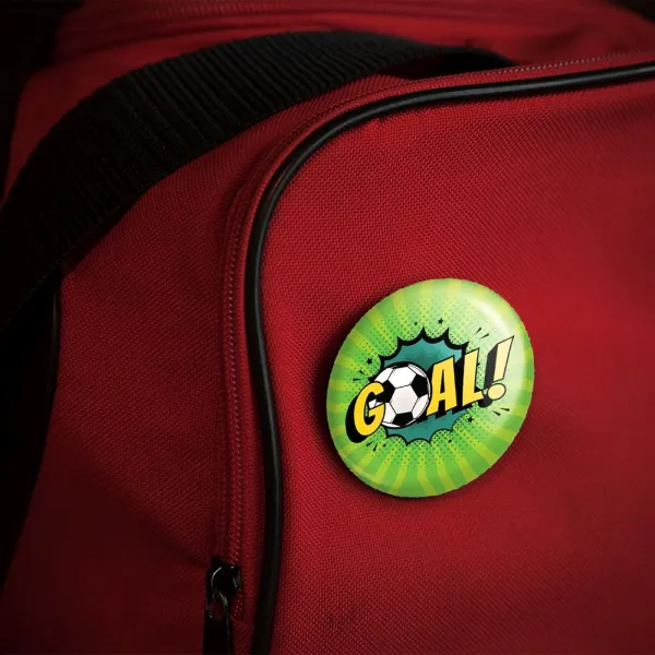 پیکسل 44 میلی متری فوتبال Football خندالو با روکش سلفون حرارتی مات مخملی ضدخش و قطعه پشتی رنگی تولید شده است.پلاستیکی پشت پیکسل با سوزن یک تکه ثابت و بدون لغزش و جا به جایی، ایستایی بسیار بهتری نسبت به پشتی فلزی پیکسل دارند که این مهم در تولید این محصول نیز رعایت شده است.