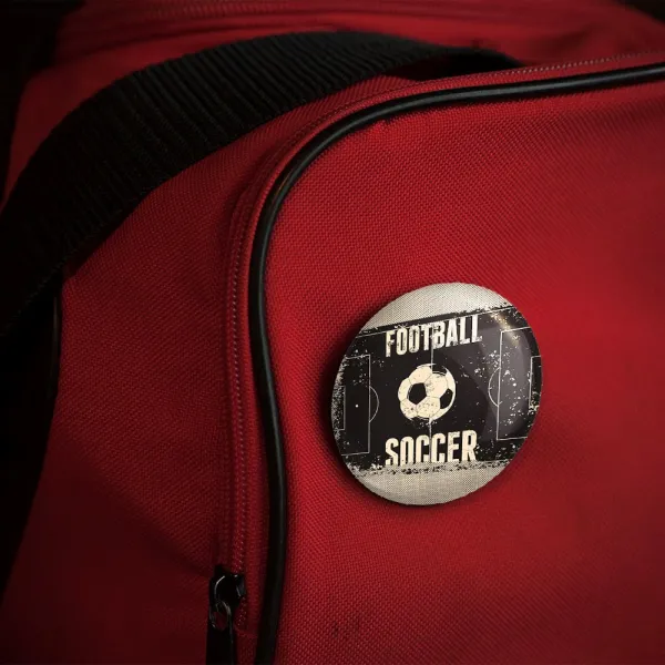 پیکسل 44 میلی متری فوتبال Football خندالو با روکش سلفون حرارتی مات مخملی ضدخش و قطعه پشتی رنگی تولید شده است.پلاستیکی پشت پیکسل با سوزن یک تکه ثابت و بدون لغزش و جا به جایی، ایستایی بسیار بهتری نسبت به پشتی فلزی پیکسل دارند که این مهم در تولید این محصول نیز رعایت شده است.